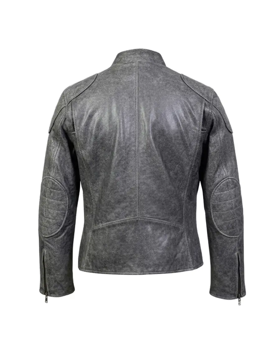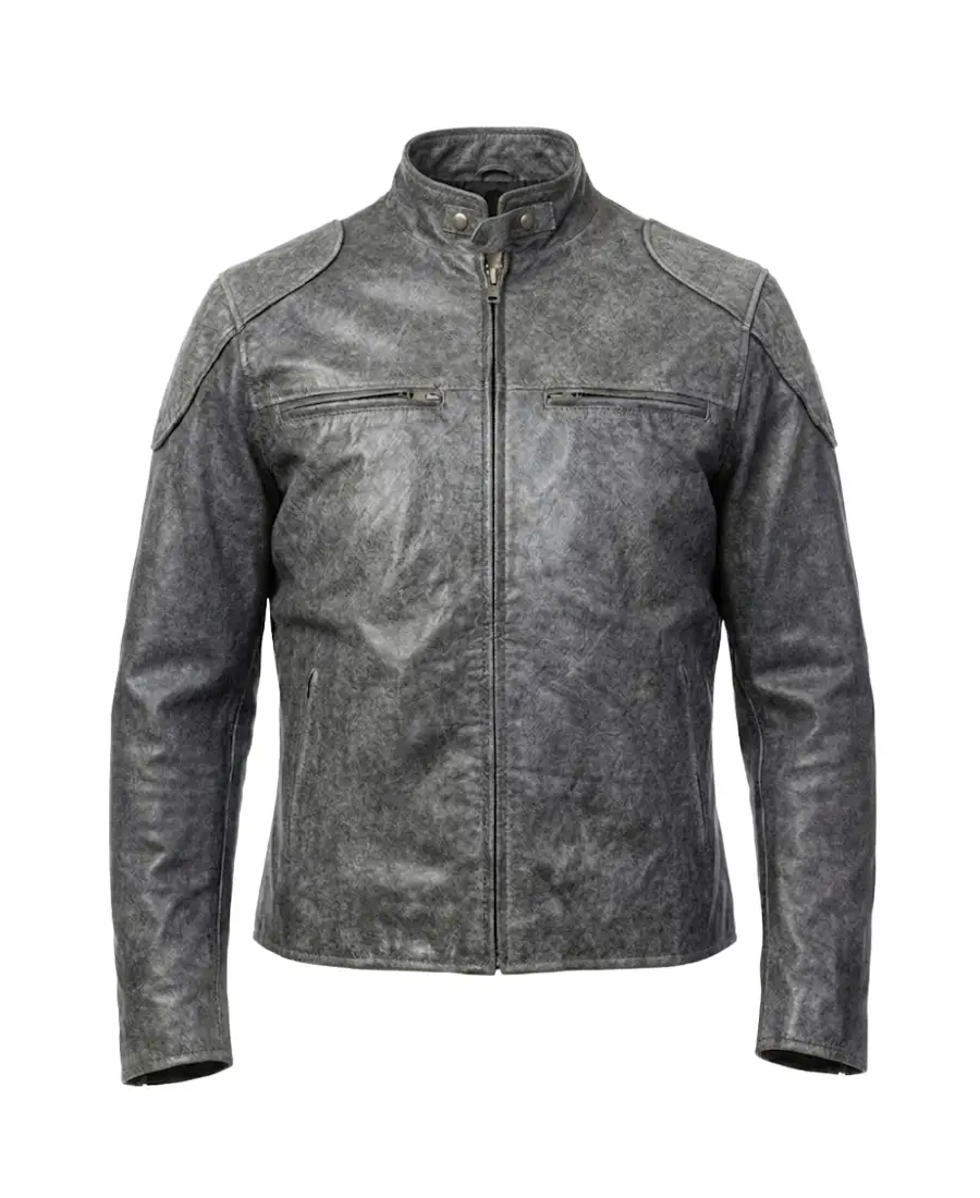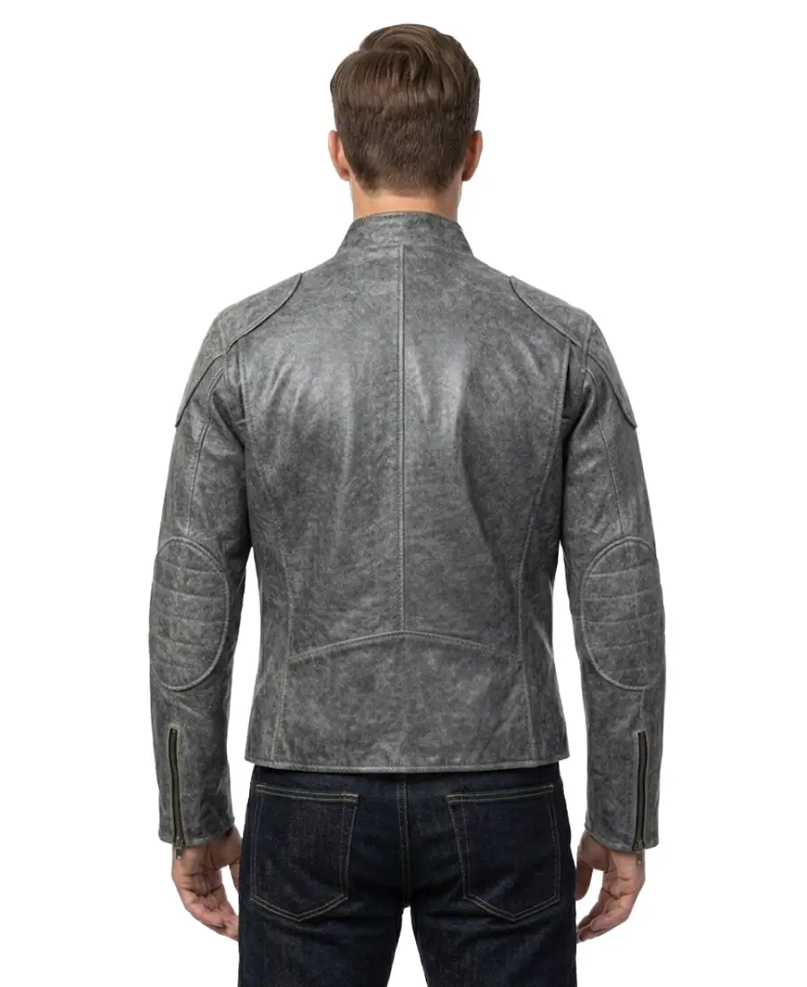 Men’s Distressed Grey Biker Leather Jacket