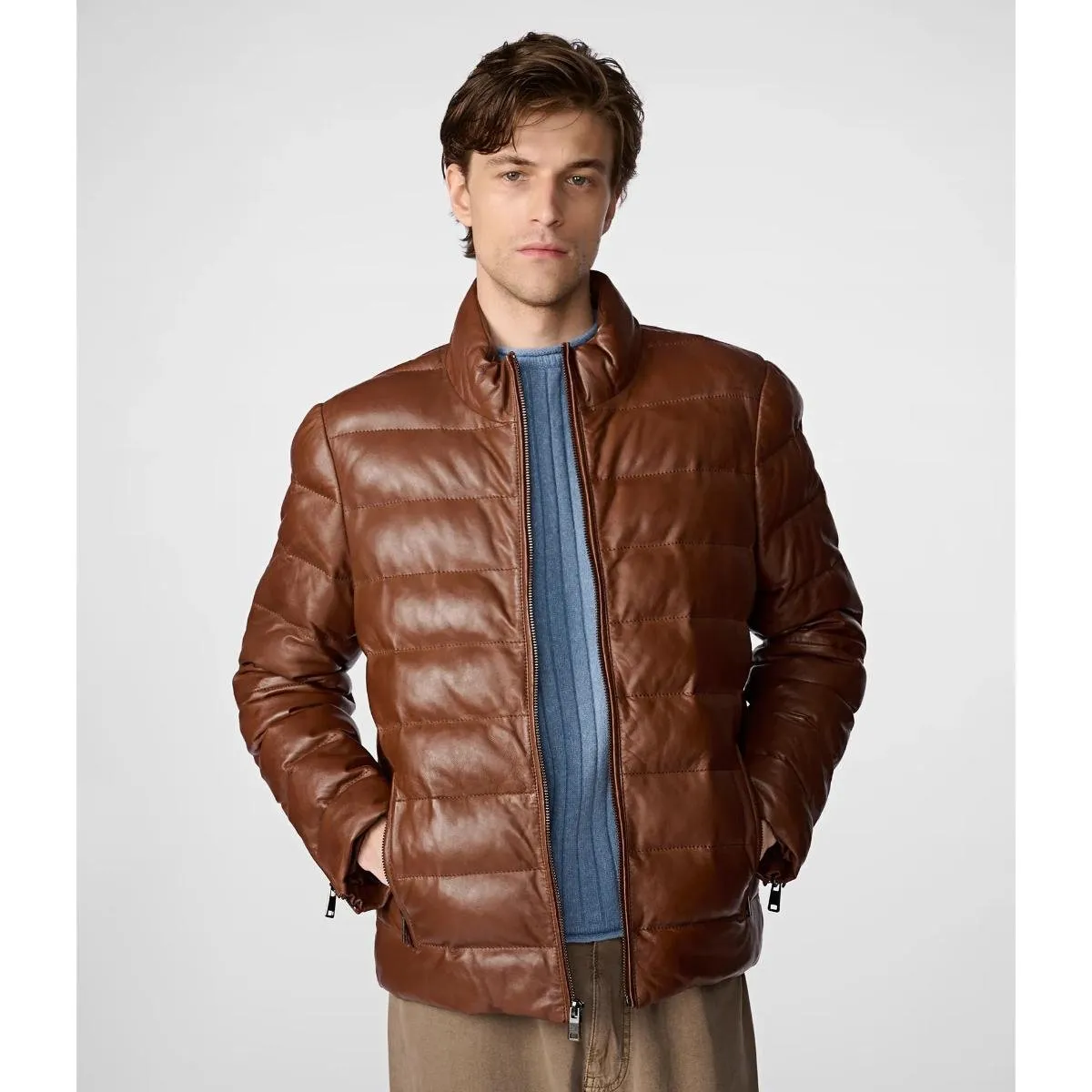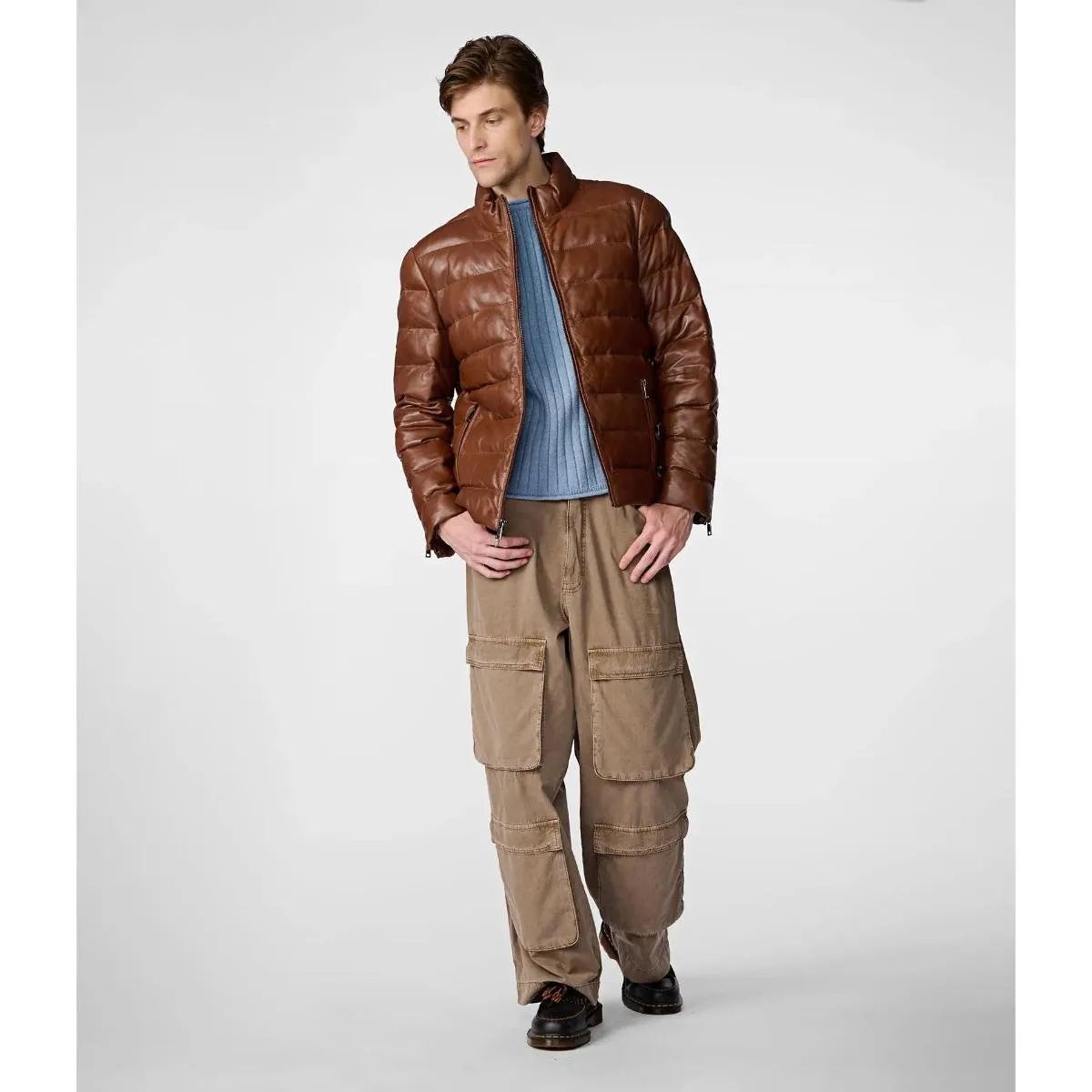 Be the first to review “Men’s Distressed Leather Puffer Jacket In Brown” Cancel reply