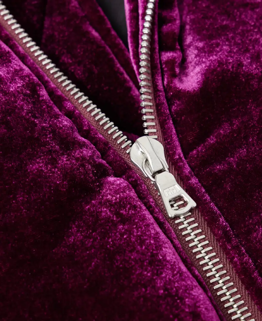 Expertly crafted from premium velvet, this jacket offers a soft, plush texture with a subtle sheen that instantly enhances any outfit. The bomber silhouette features a front zip closure, ribbed cuffs, collar, and hem, ensuring a clean and tailored fit. A smooth inner lining provides comfort and effortless layering, making it suitable for both day and evening wear.