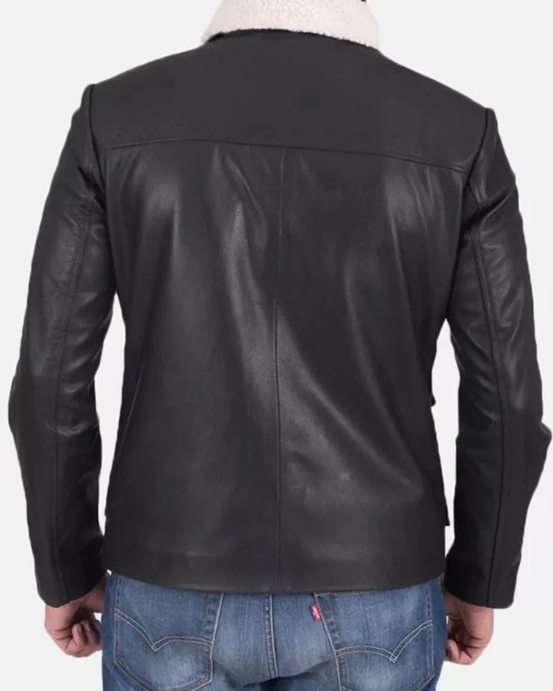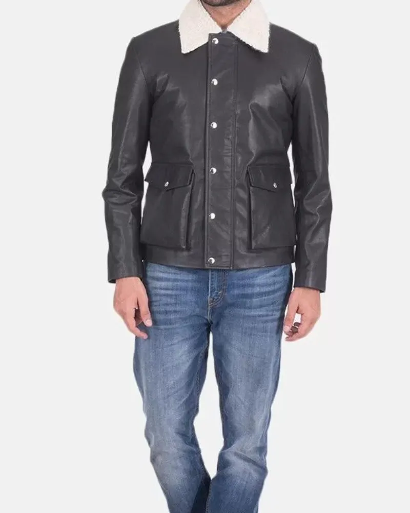 Men’s Flap Pockets Black Leather Jacket