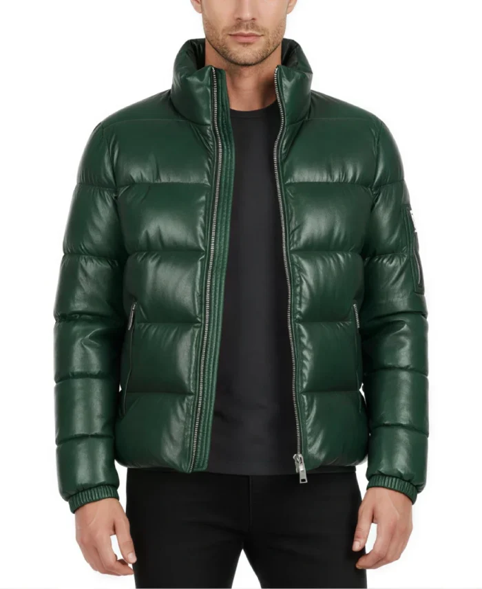 Shop The Men’s Green Puffer Leather Jacket