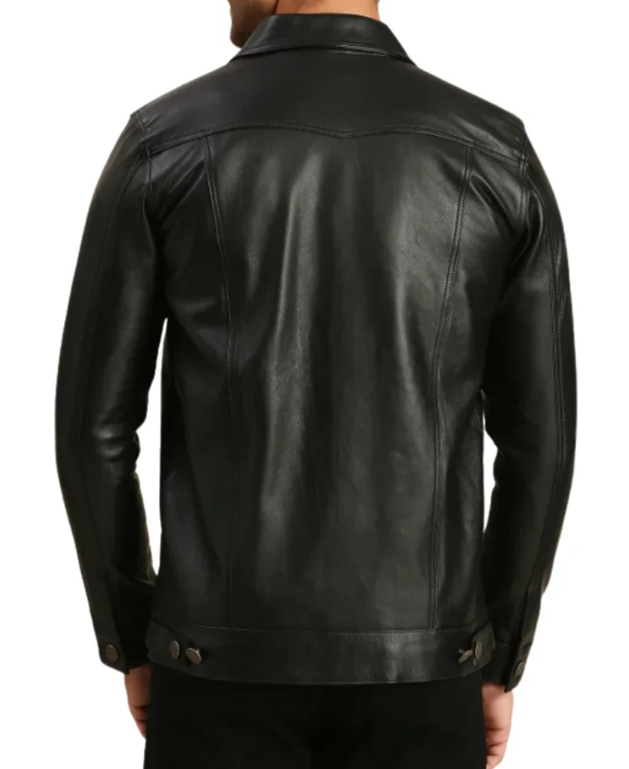 Men’s Holland Black Leather Trucker Jacket