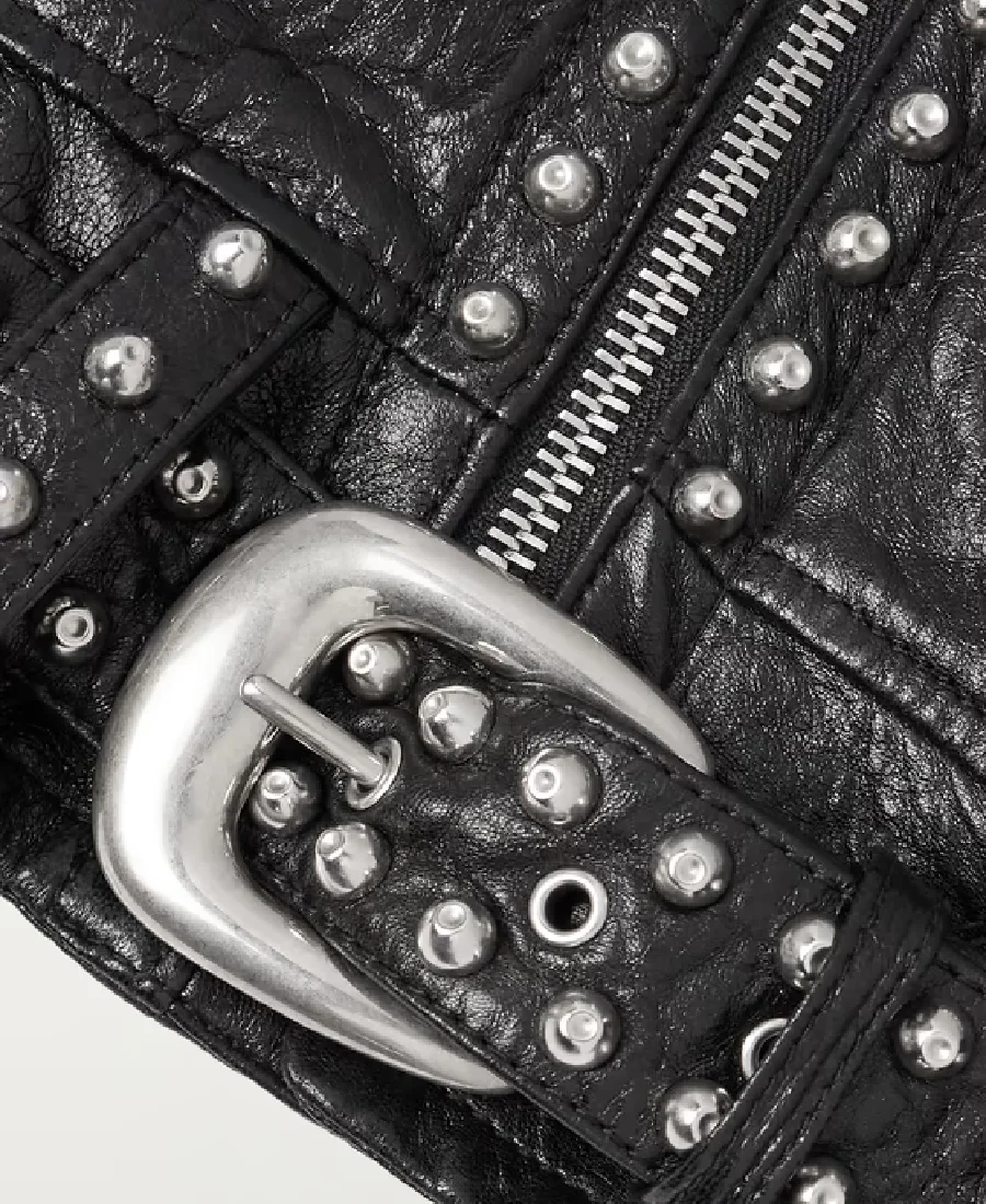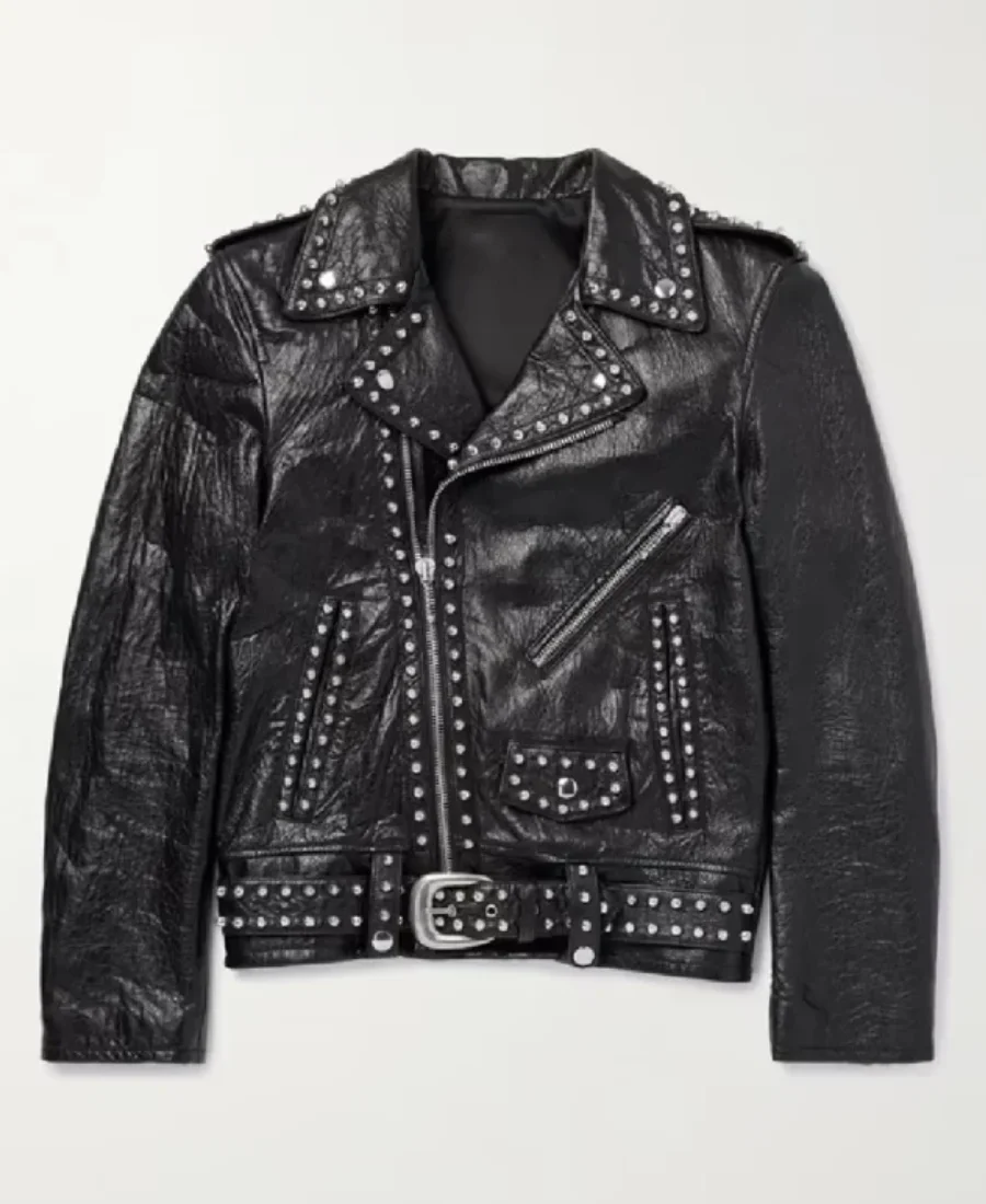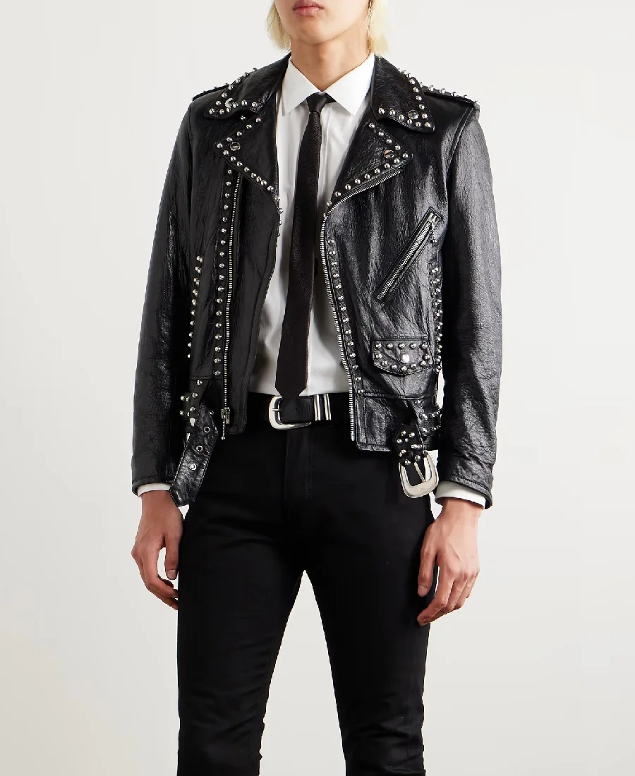 Shop The Men’s Homme Studded Belted Textured Black Leather Jacket