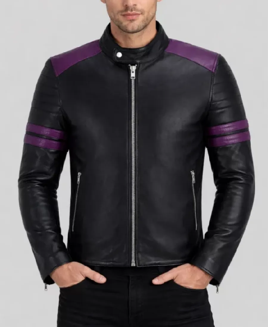 Men’s Jason Purple Strips Biker Jacket