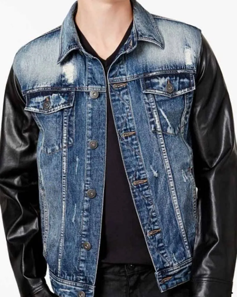 Men’s Jean Jacket With Leather Sleeves