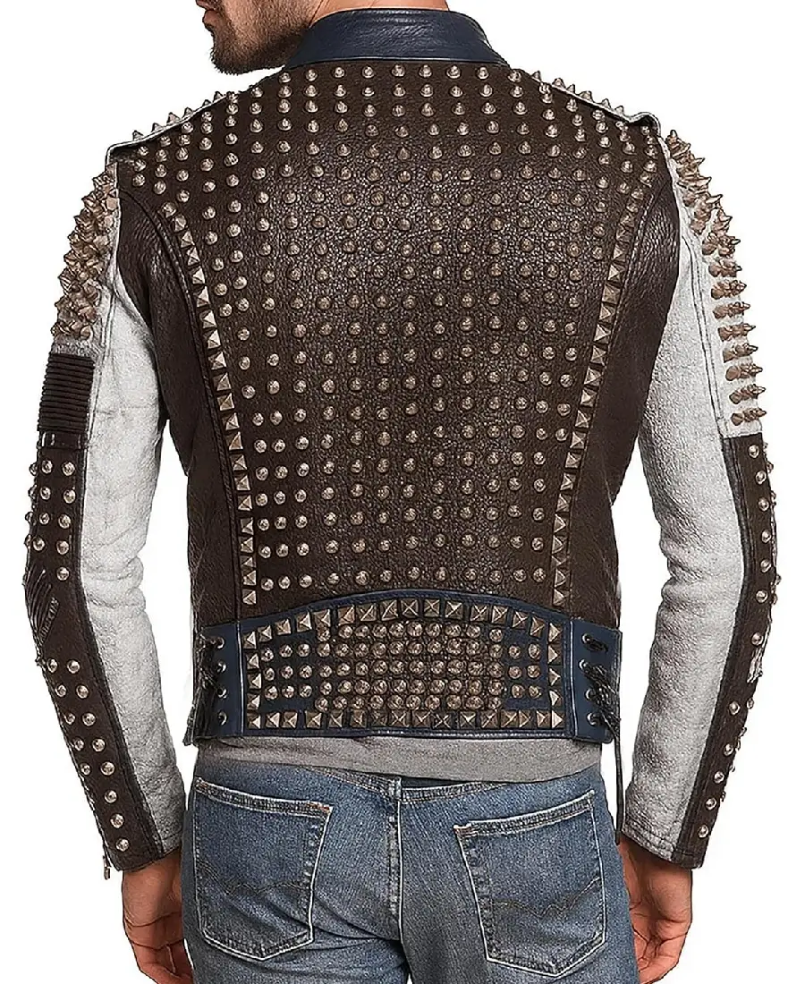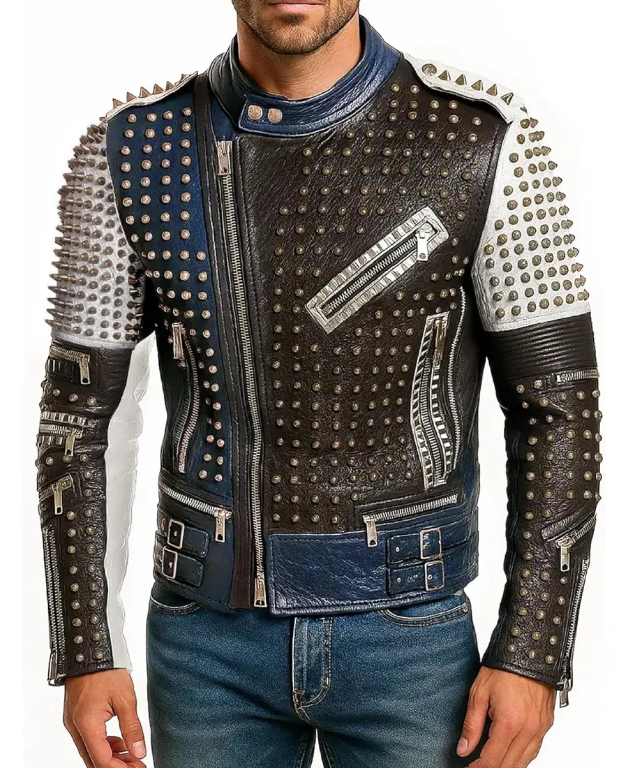 Men’s LP-FACON Spike Studded Leather Motorbike Jacket