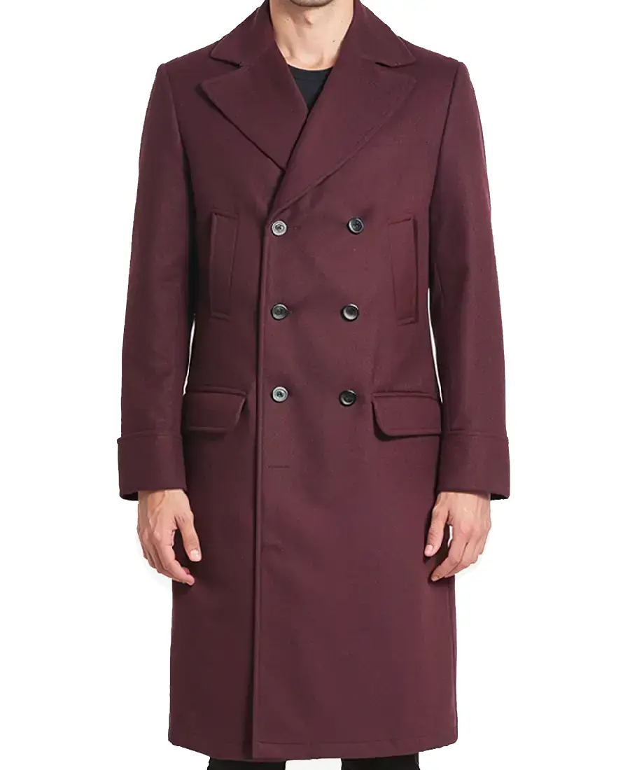 Men’s Luke Burgundy Double Breasted Wool Coat
