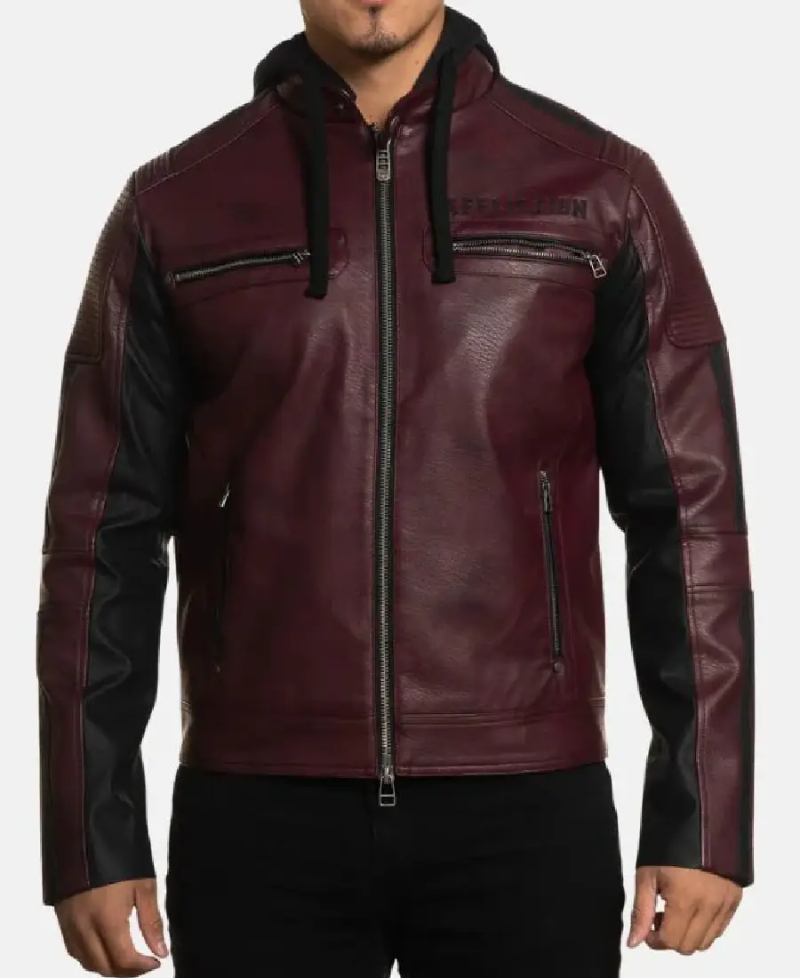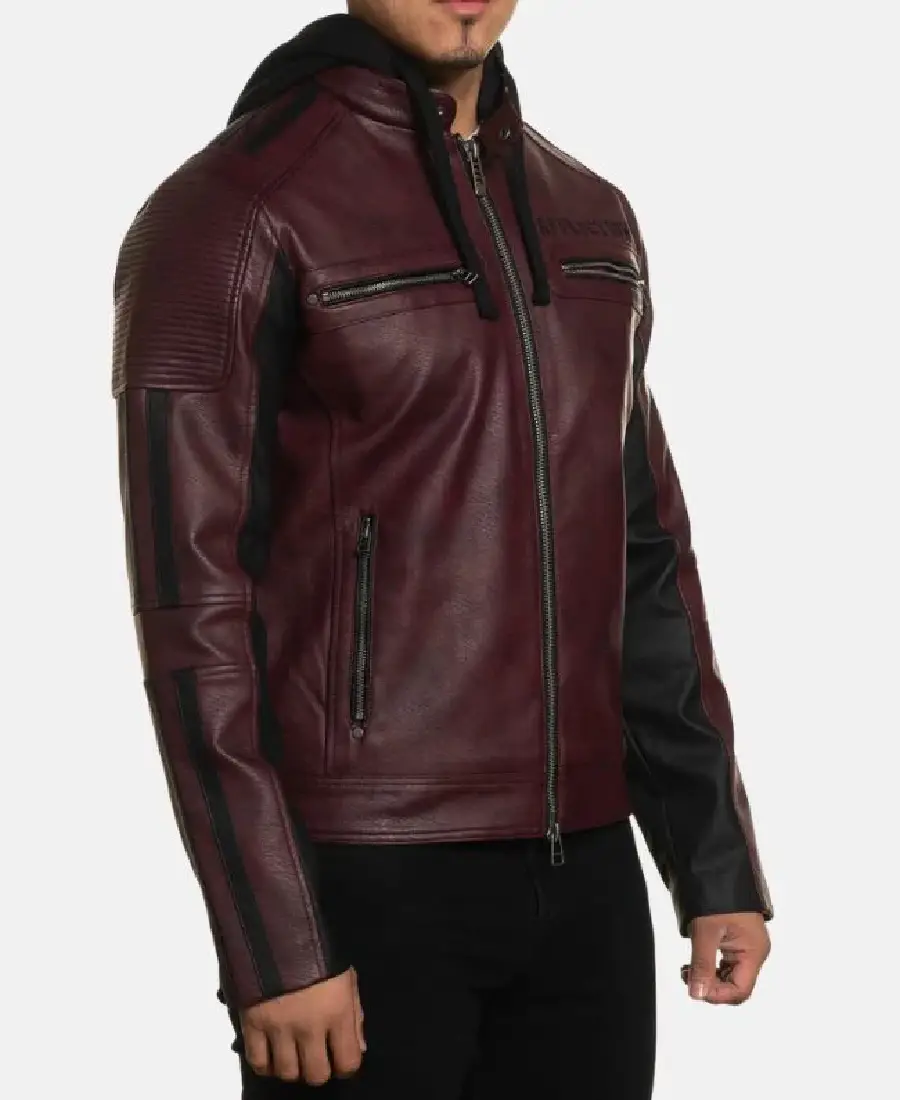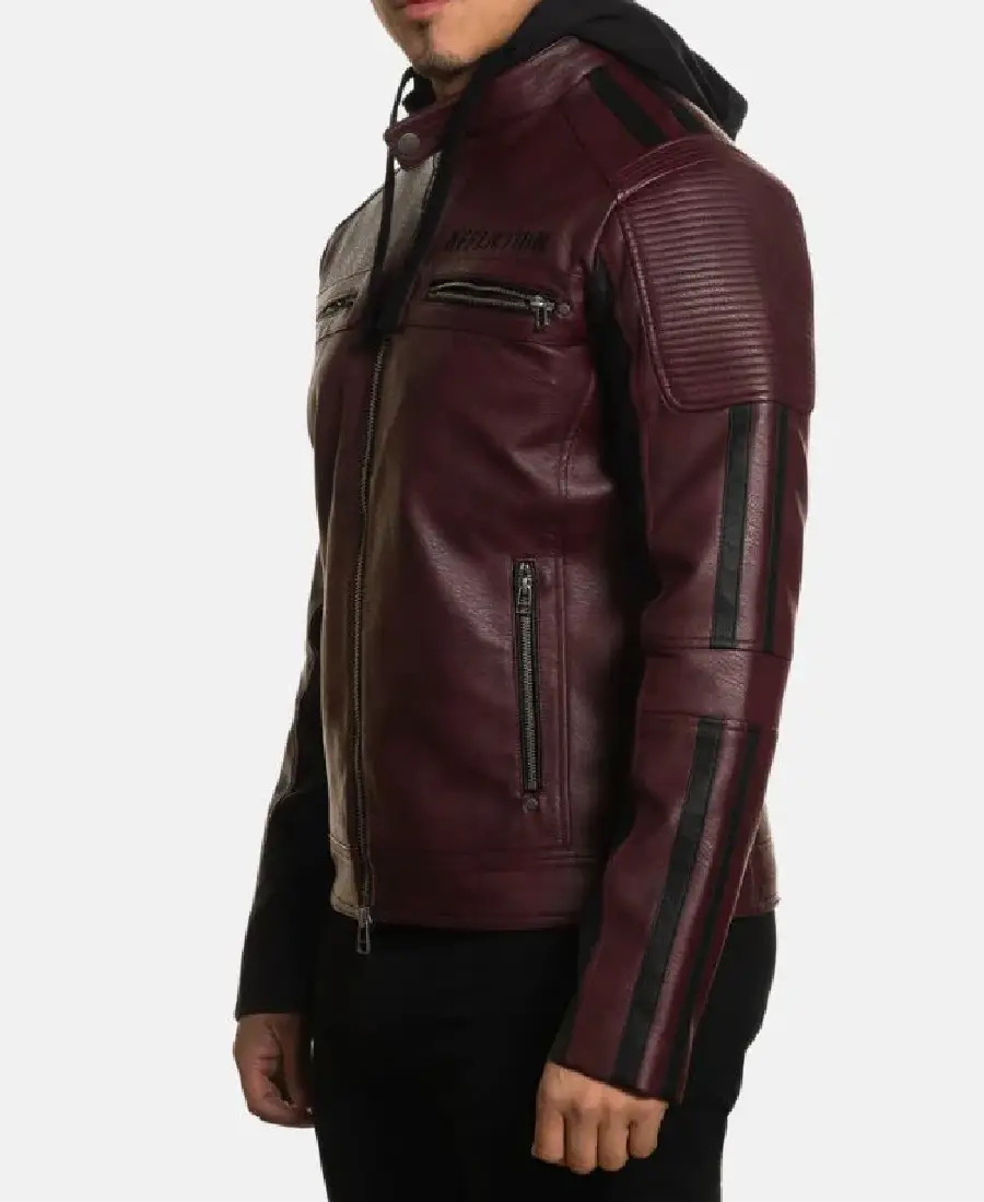 Shop The Men’s Maroon Hooded Leather Biker Jacket