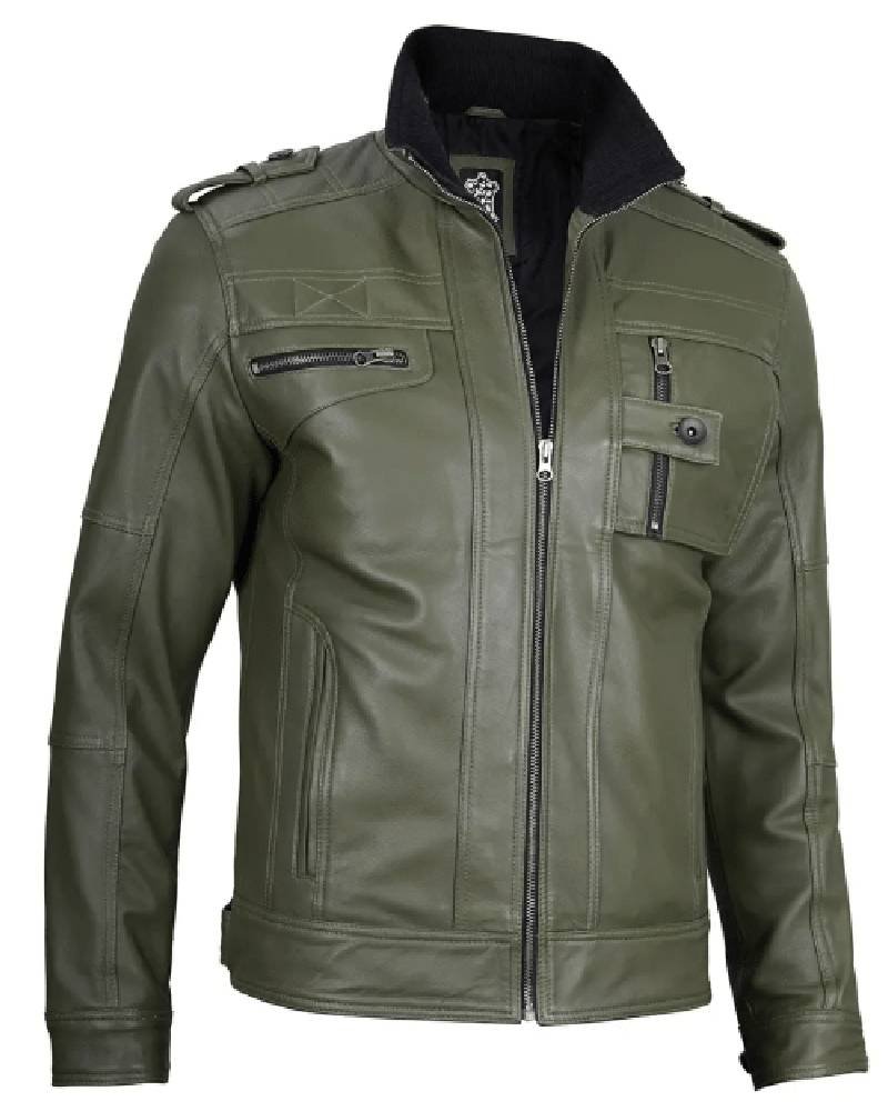Be the first to review “Mens Military Green Leather Biker Jacket” Cancel reply