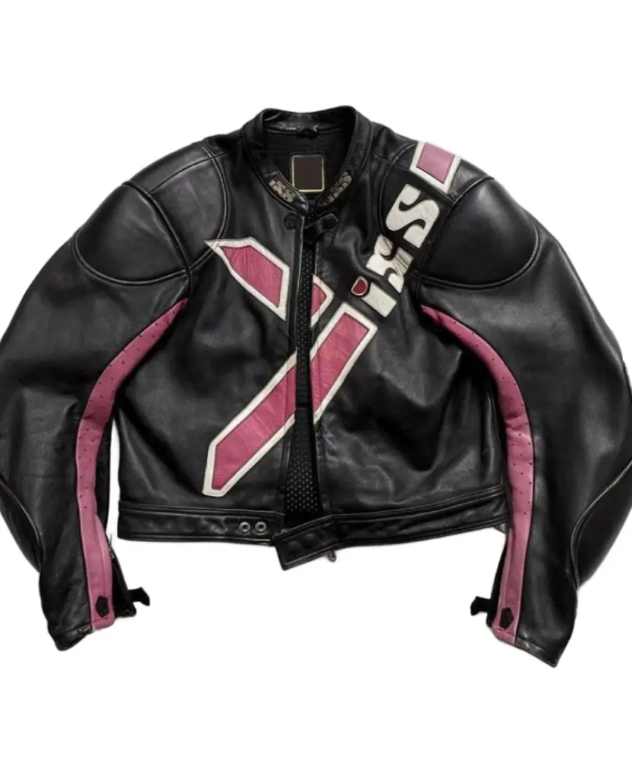 Men’s Multi Black x Pink Leather Biker Jacket