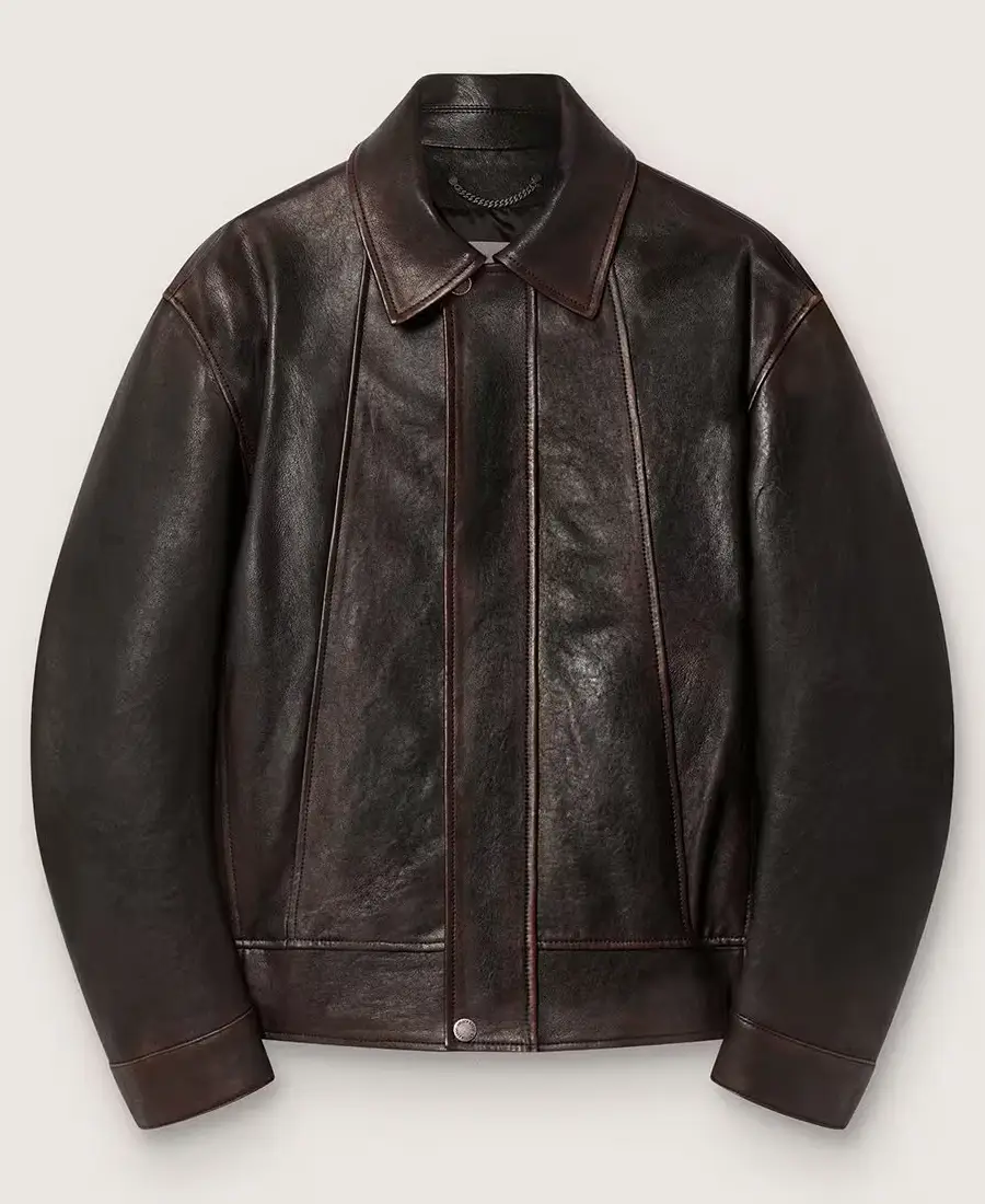 Shop The Men’s Nappa Dark Brown Leather Bomber Jacket