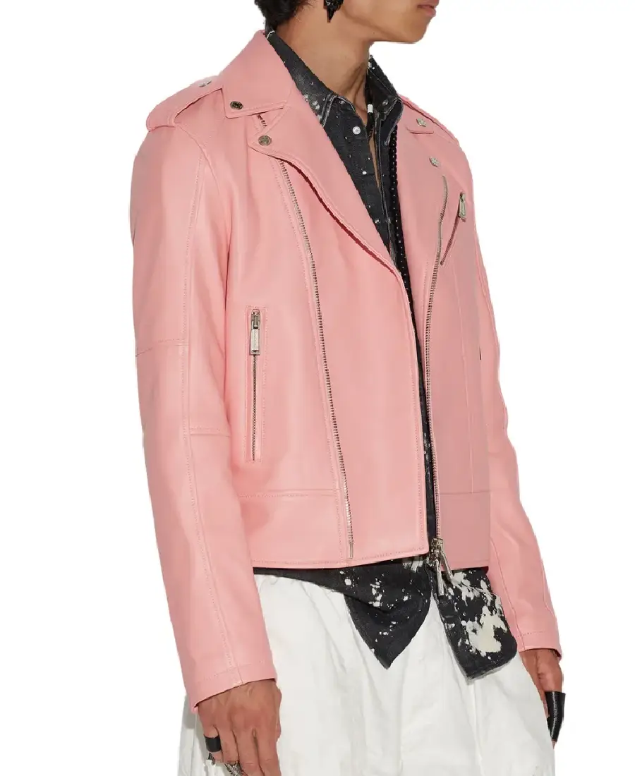 Shop The Men’s Pink Leather Moto Jacket