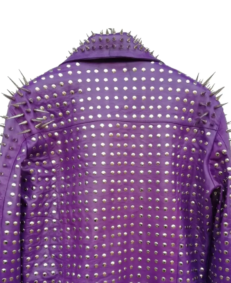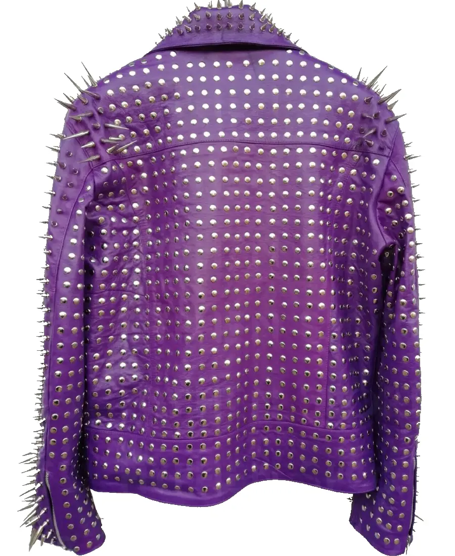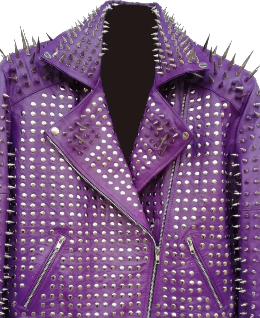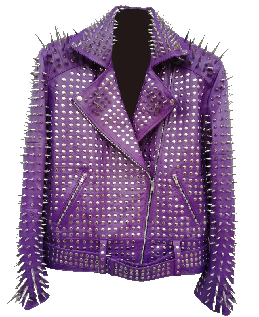 Mens Punk Purple Studded Biker Leather Jacket