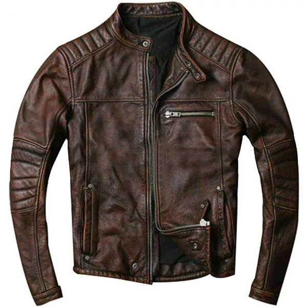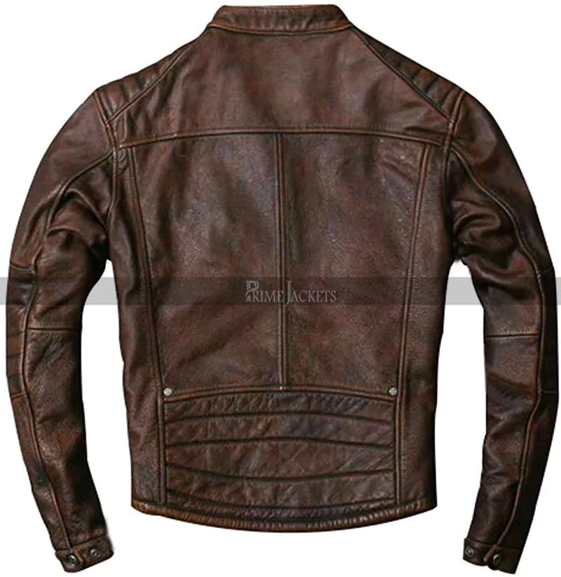 Men’s Quilted Distressed Brown Motorcycle Leather Jacket