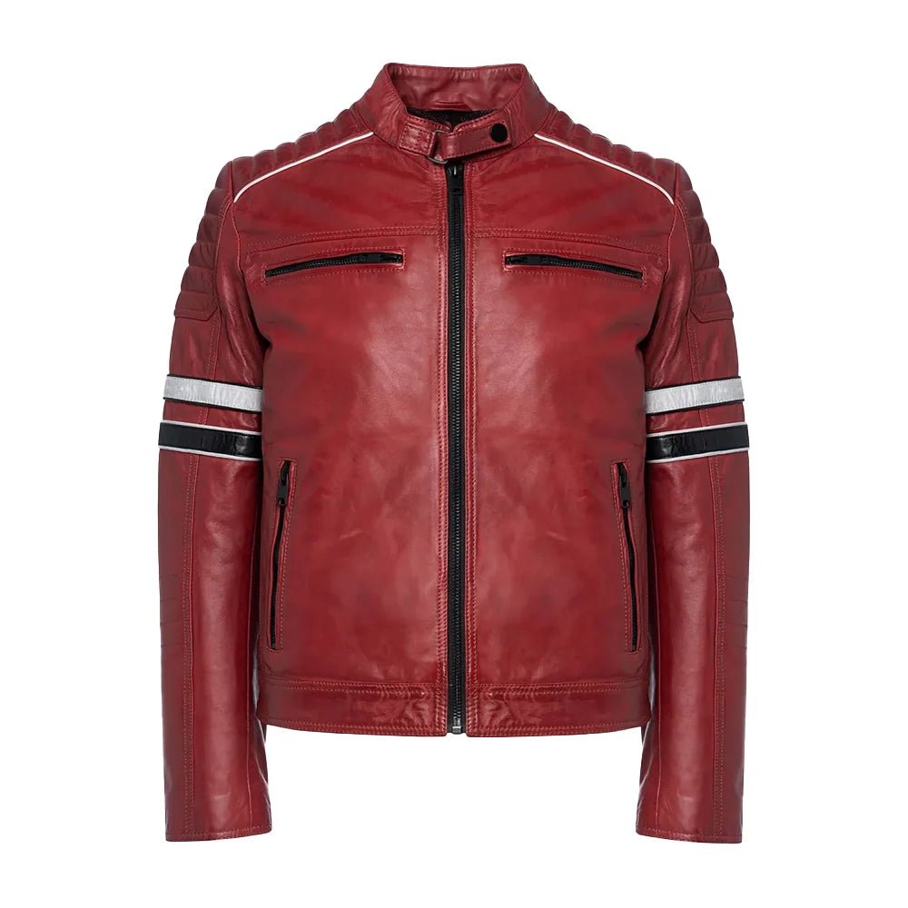 Men’s Quilted Red Leather Racing Jacket