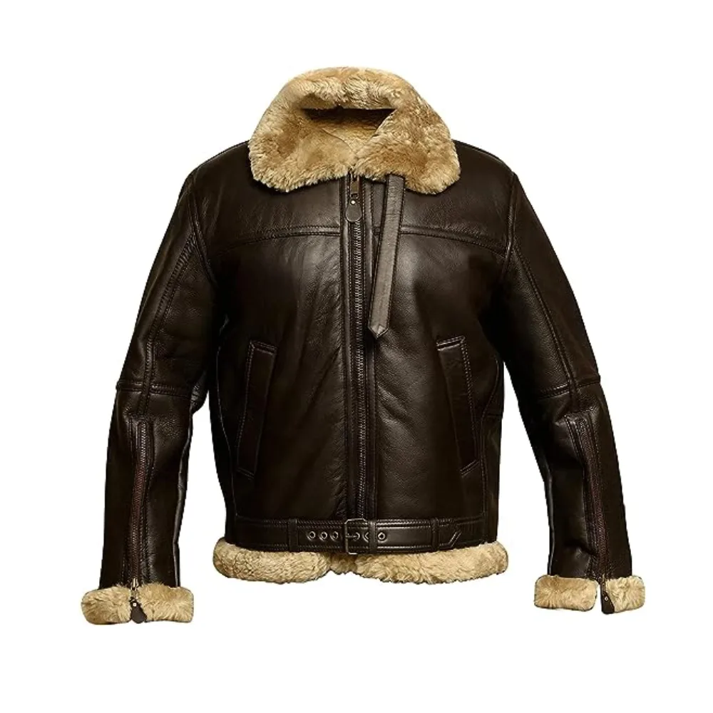 Mens RAF Aviator B3 Bomber Faux Fur Leather Jacket