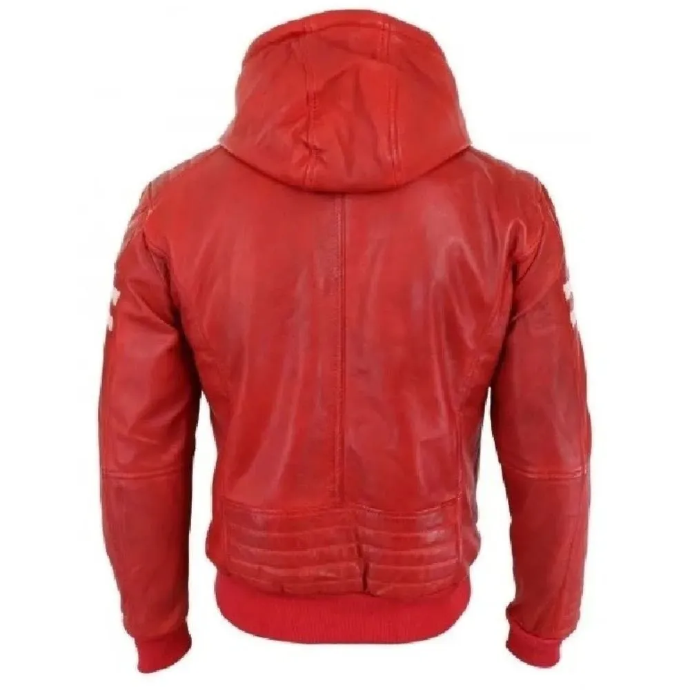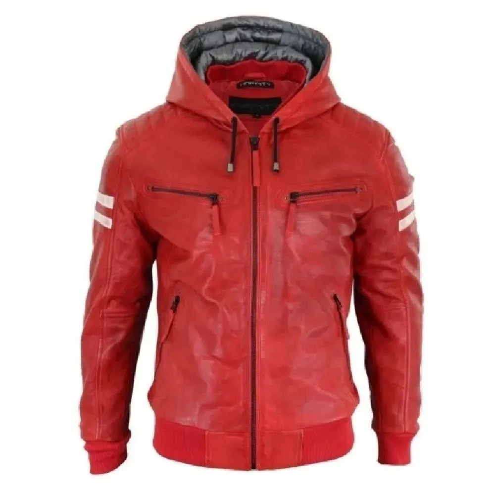 Mens Red Bomber Hooded Leather Jackets