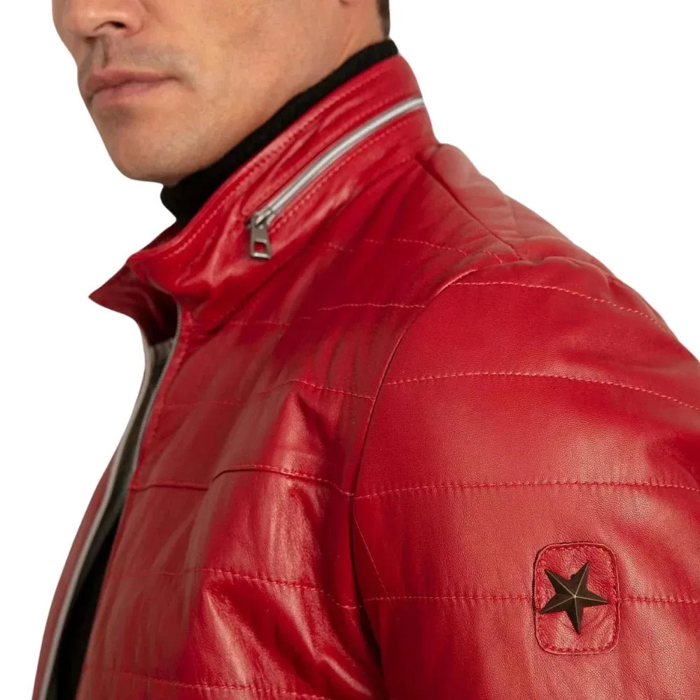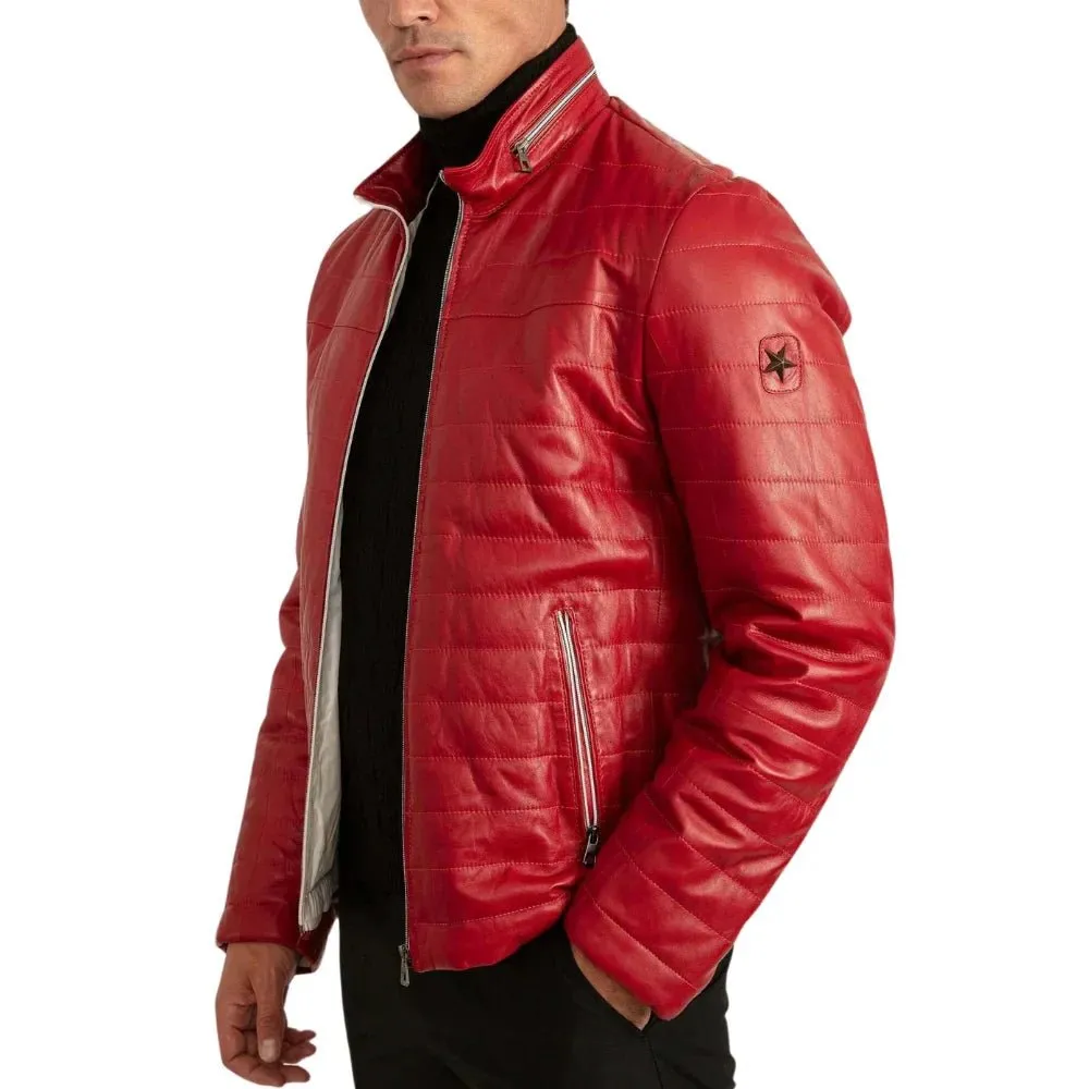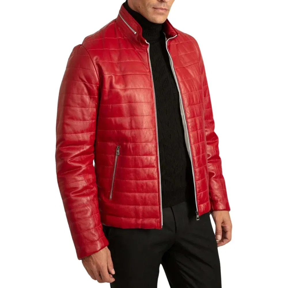 Men’s Red Lambskin Puffer Jacket