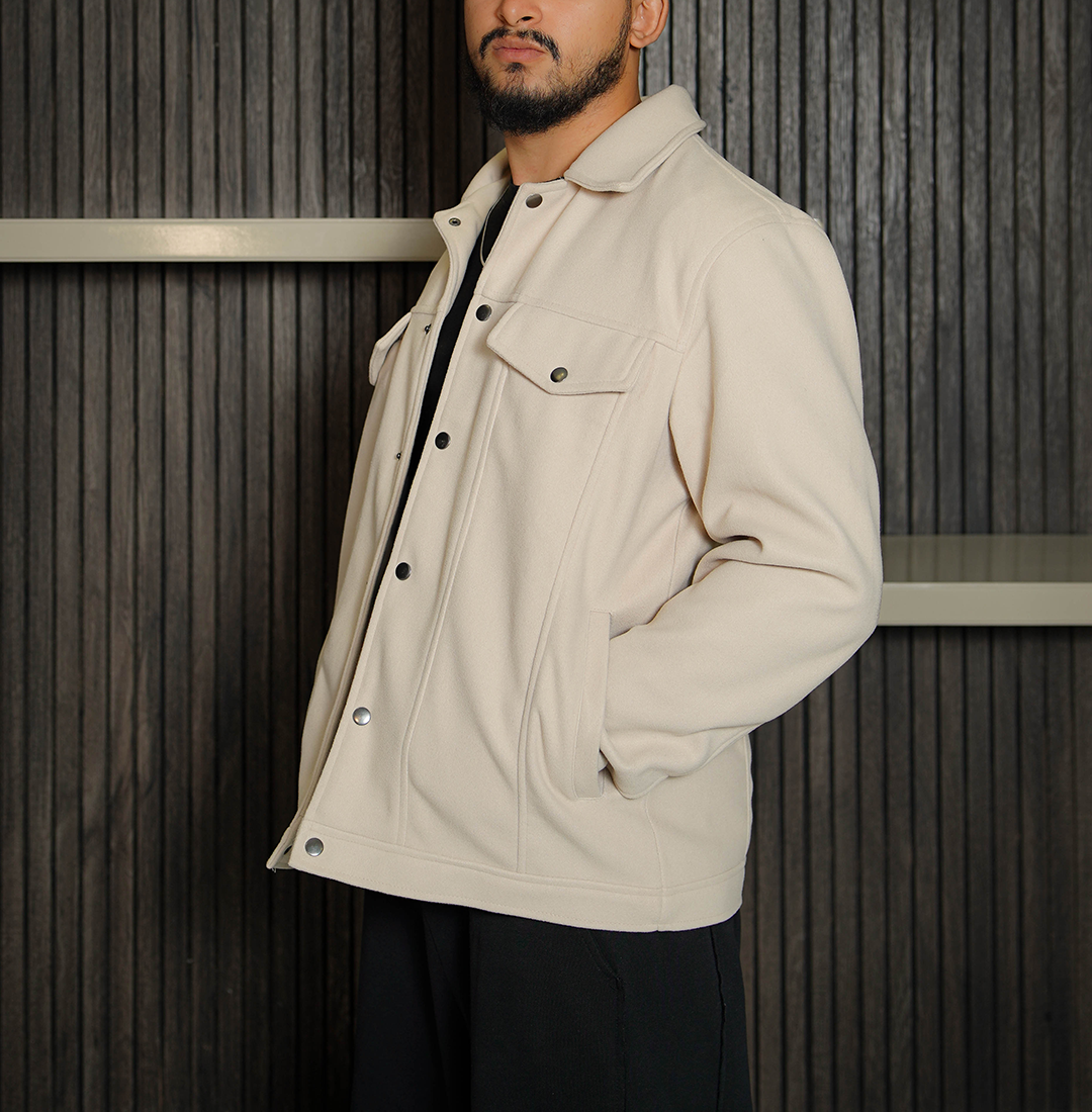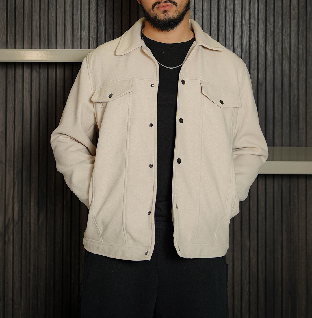 Refresh your style with the Men's Signature Off White Faux Suede Jacket from Trendy Leather Jackets. This jacket features a beautiful off-white shade that brings a clean and modern vibe to your wardrobe. The minimalist design and classic shirt-style collar make it incredibly versatile, allowing you to pair it with everything from dark jeans to tailored trousers. Whether you are heading to a casual lunch or a semi-formal evening event, this jacket offers a polished look that feels light and effortless. It is the perfect choice for anyone who wants a high-end fashion feel while maintaining a relaxed and approachable aesthetic.