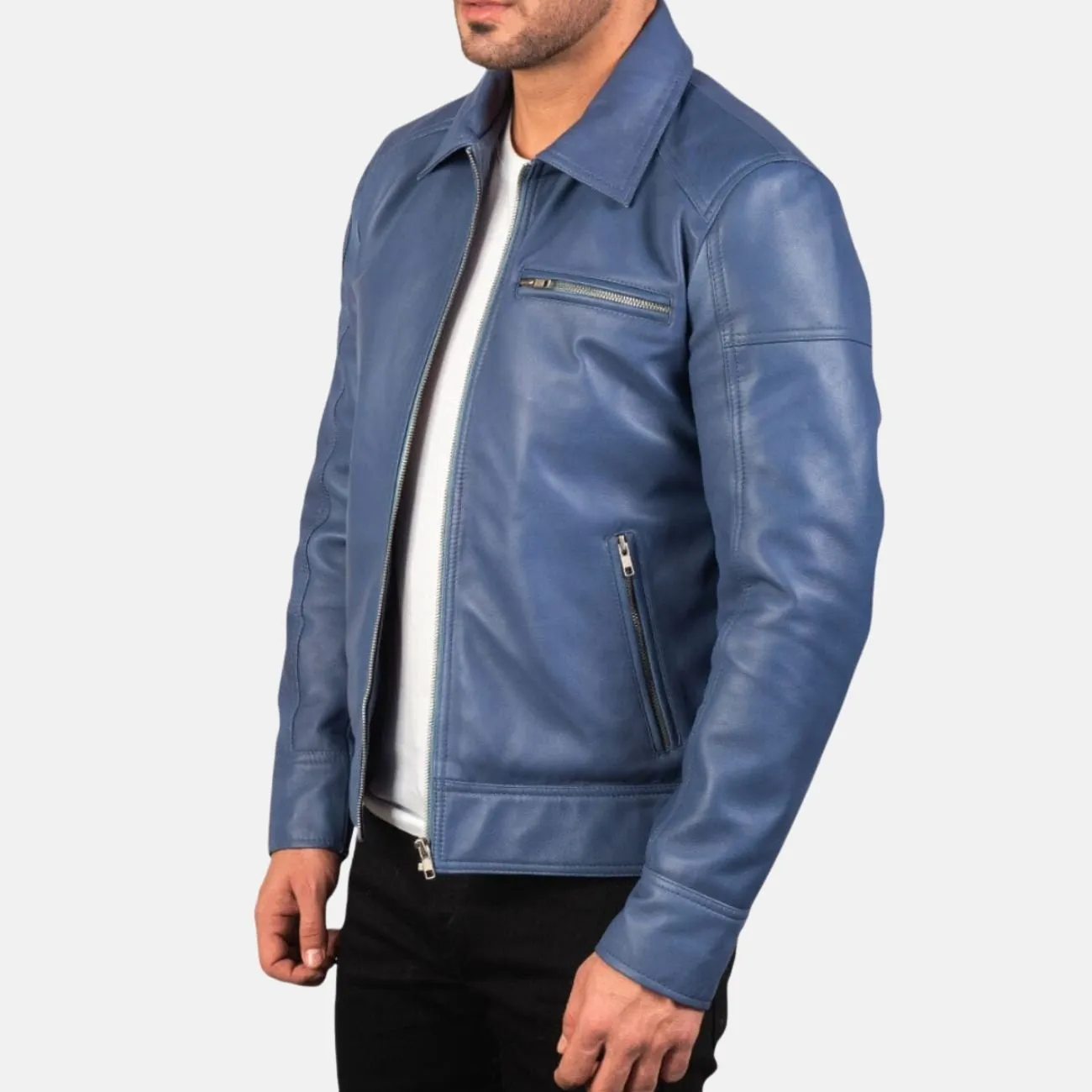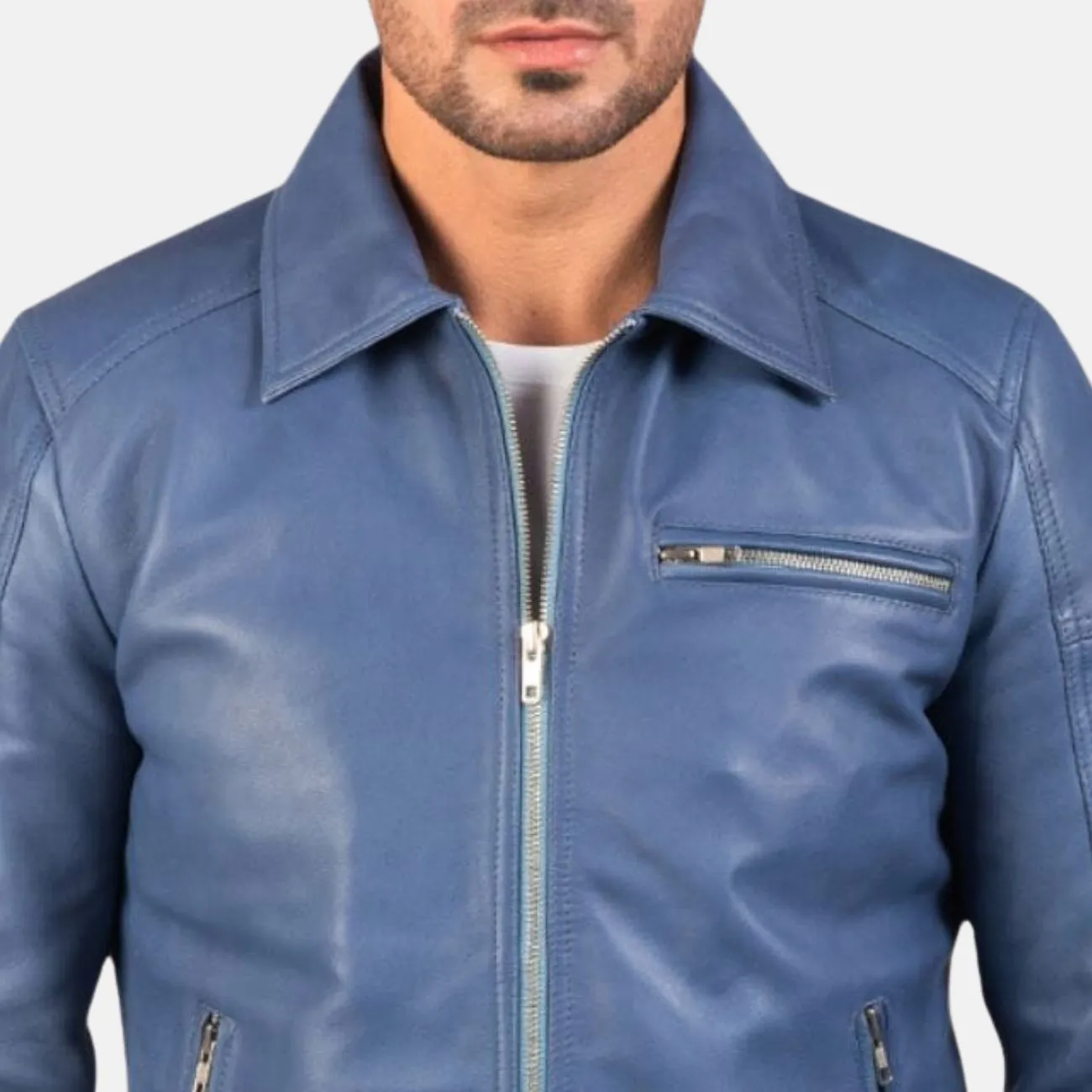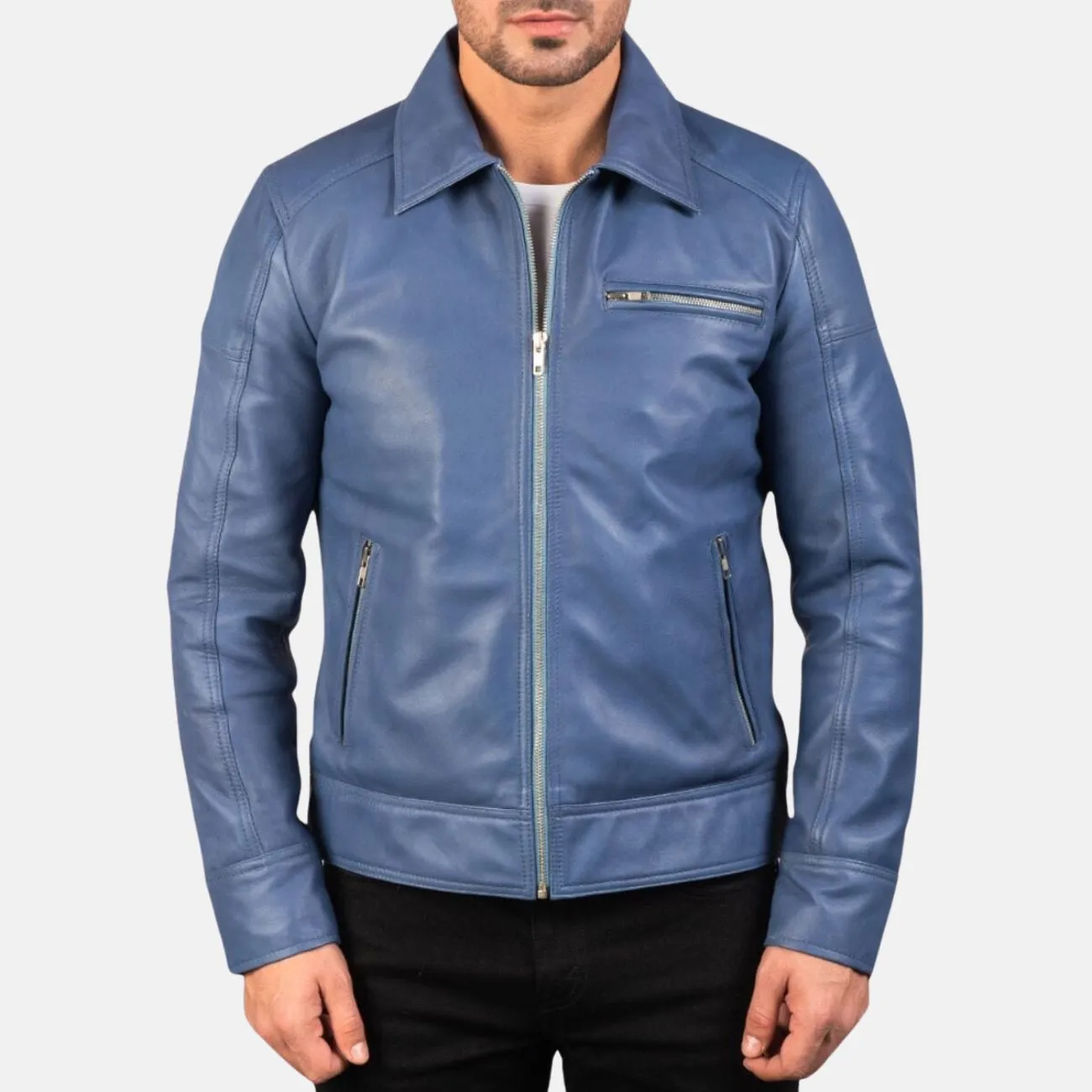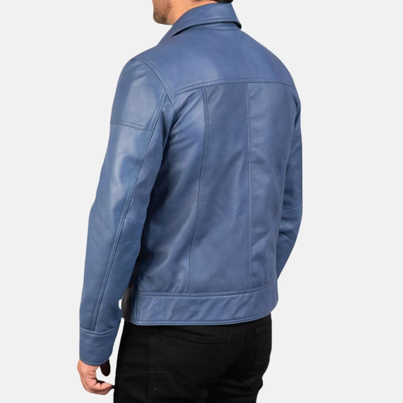 Mens Simple Blue Leather Jacket