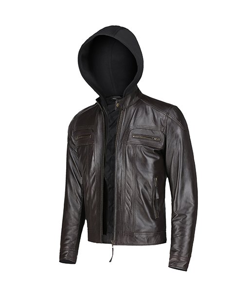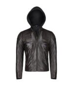 Men’s Slim Fit Leather Jacket With Hood