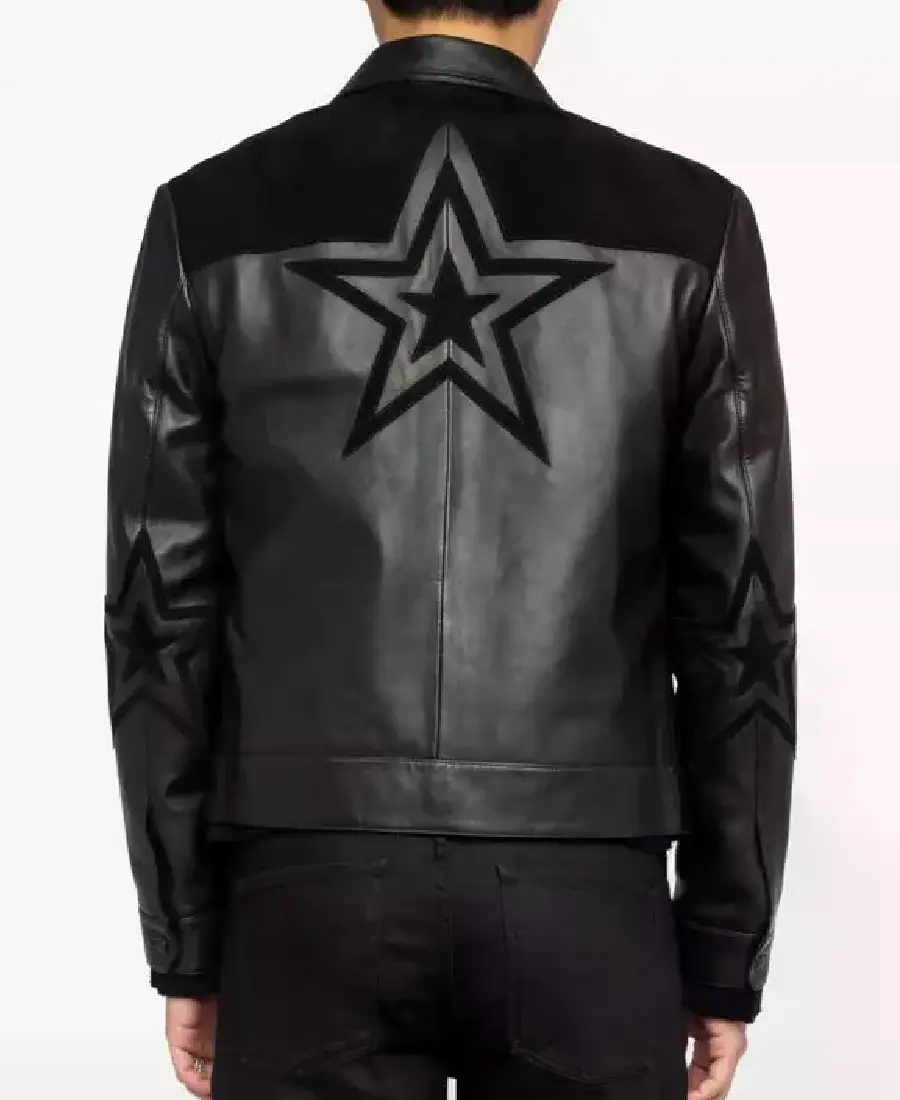 Men’s Star-Applique Leather Jacket