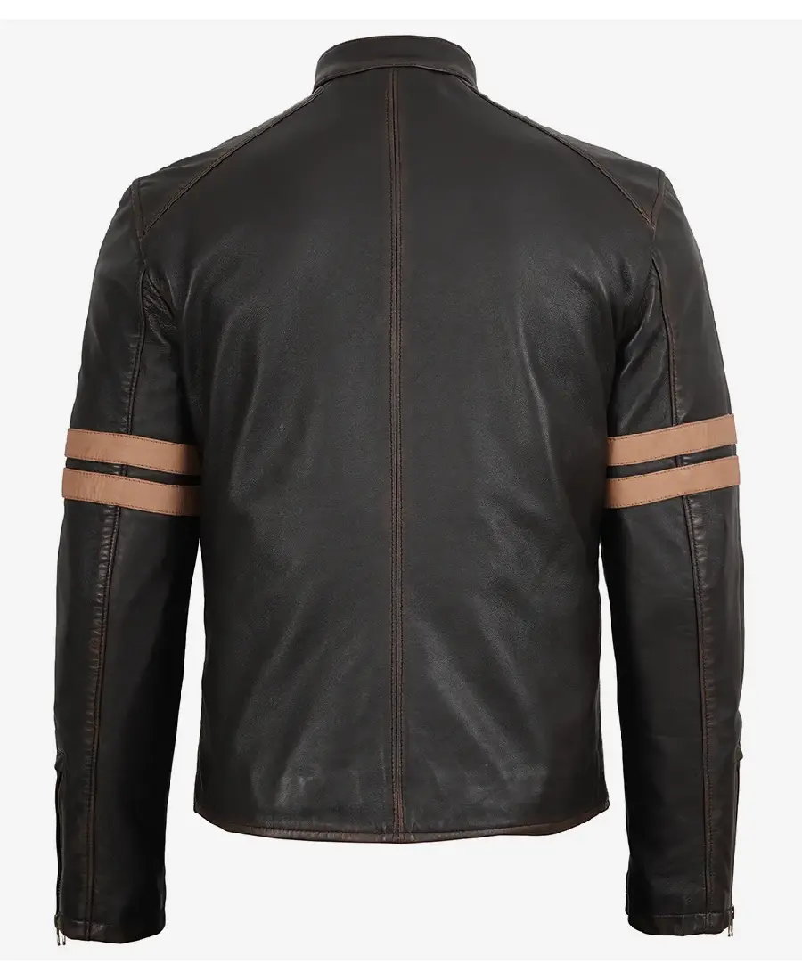 Men’s Stripes Dark Brown Biker Leather Jacket