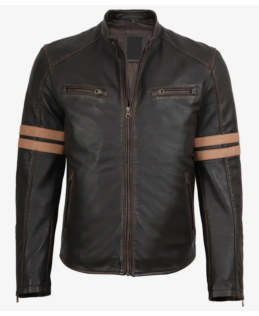 Shop The Men’s Stripes Dark Brown Biker Leather Jacket