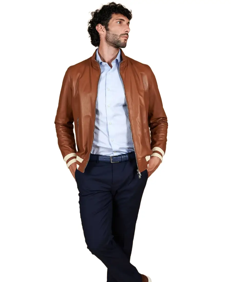 Shop The Men’s Tan Natural Bomber Leather Jacket
