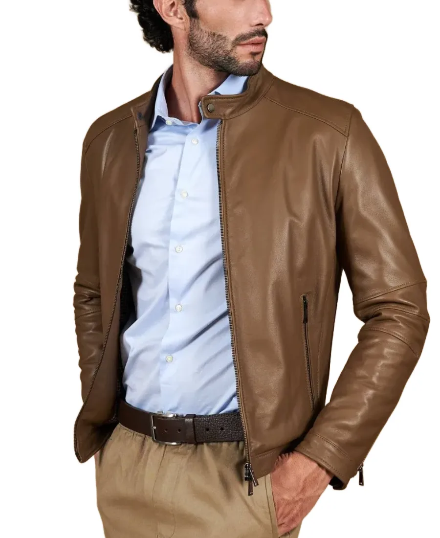 Men’s Taupe Brown Leather Jacket
