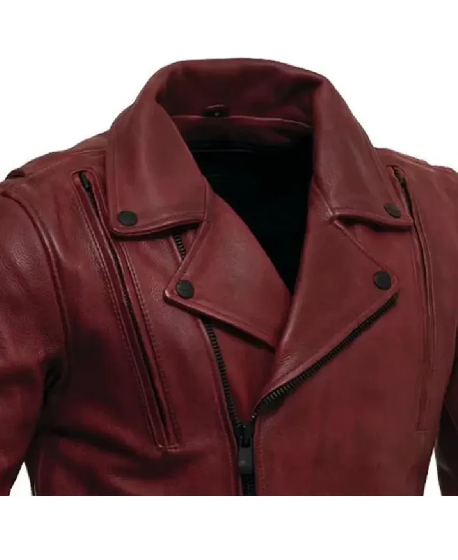 Shop The Men’s Thrill Biker Maroon Leather Jacket