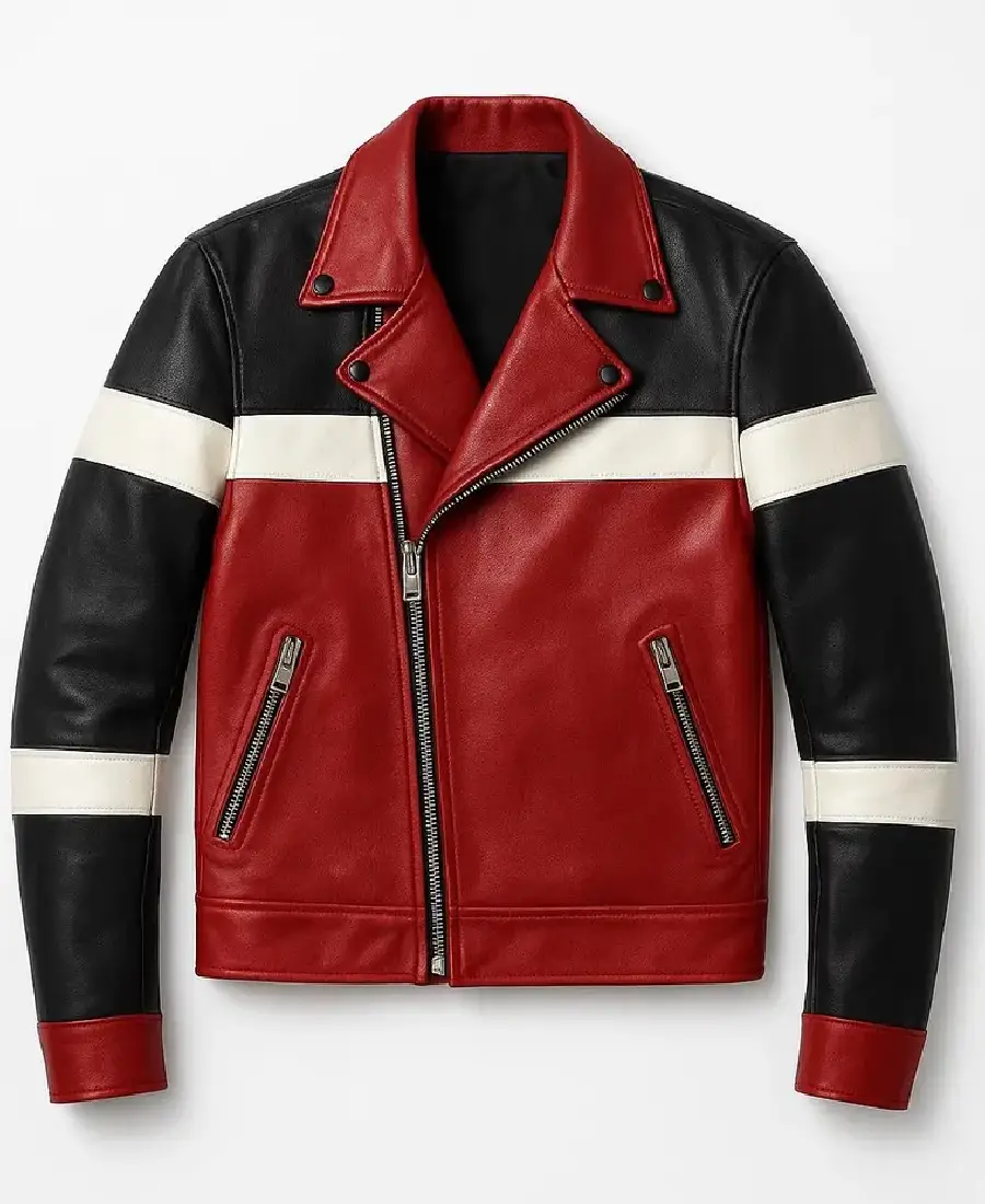 Men’s Tri-Color Leather Moto Jacket