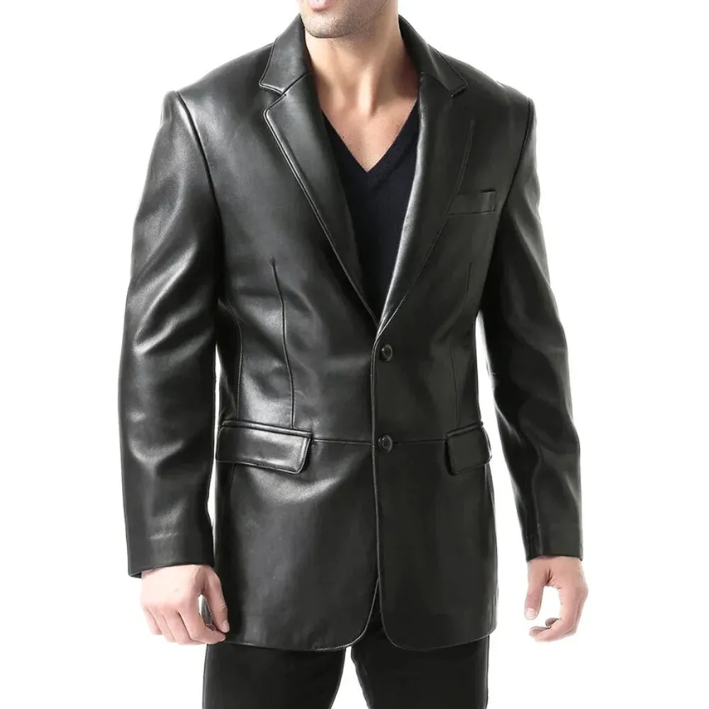 Shop TheMen’s Two Button Real Lambskin Black Leather Blazer
