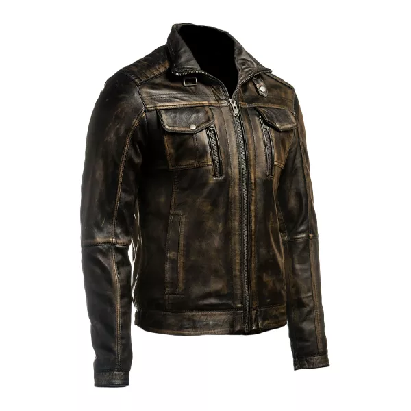 Men’s Vintage Biker Retro Motorcycle Distressed Leather Jacket