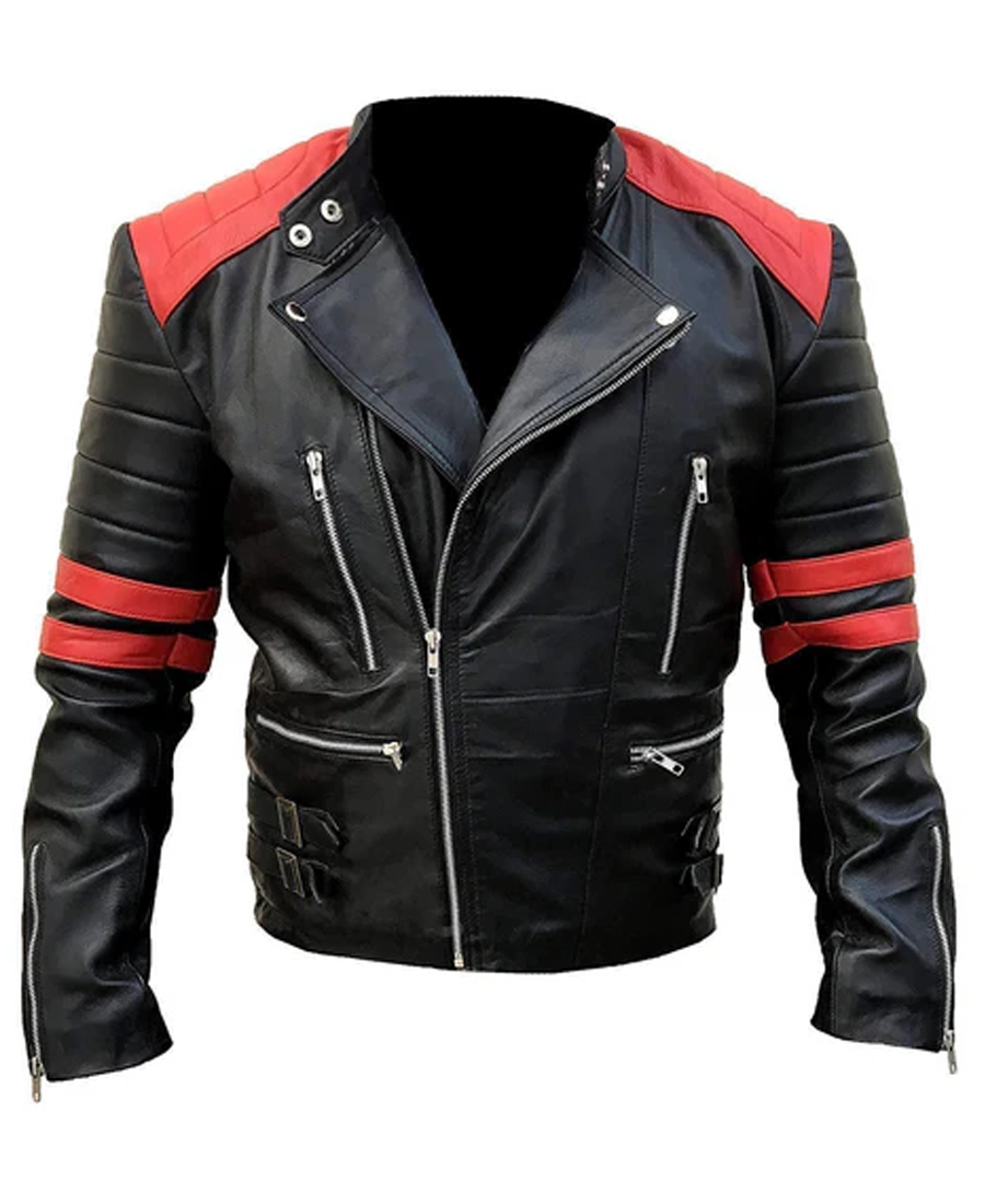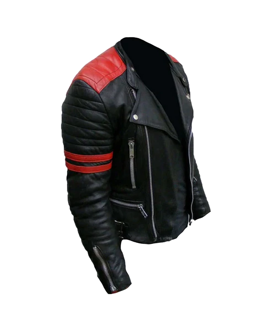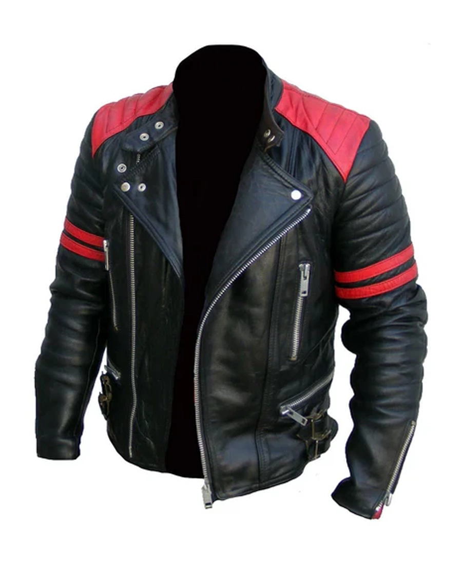 Shop The Men’s Vintage Brando Red Strip Black Leather Jacket