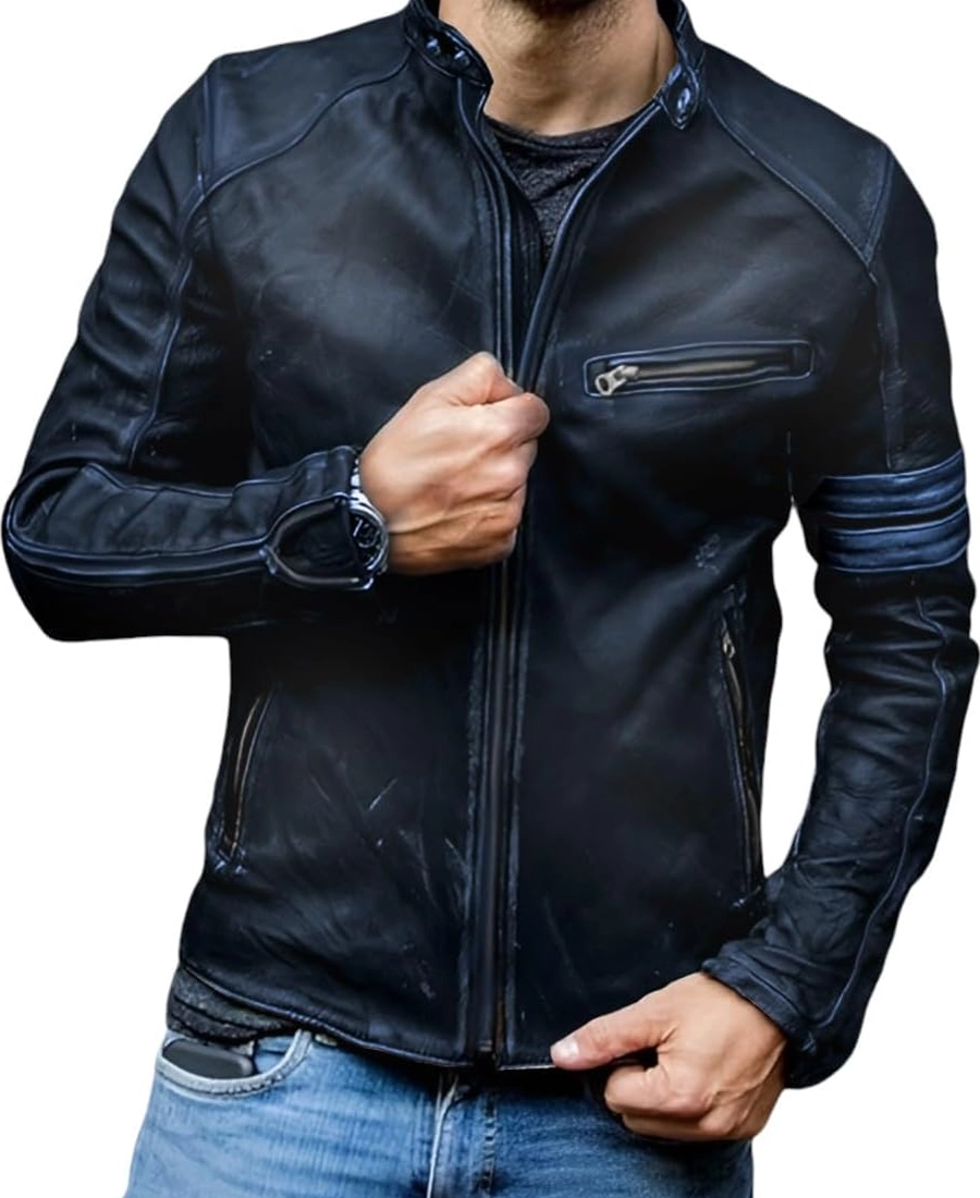 Men’s Vintage Distressed Black Biker Leather Jacket