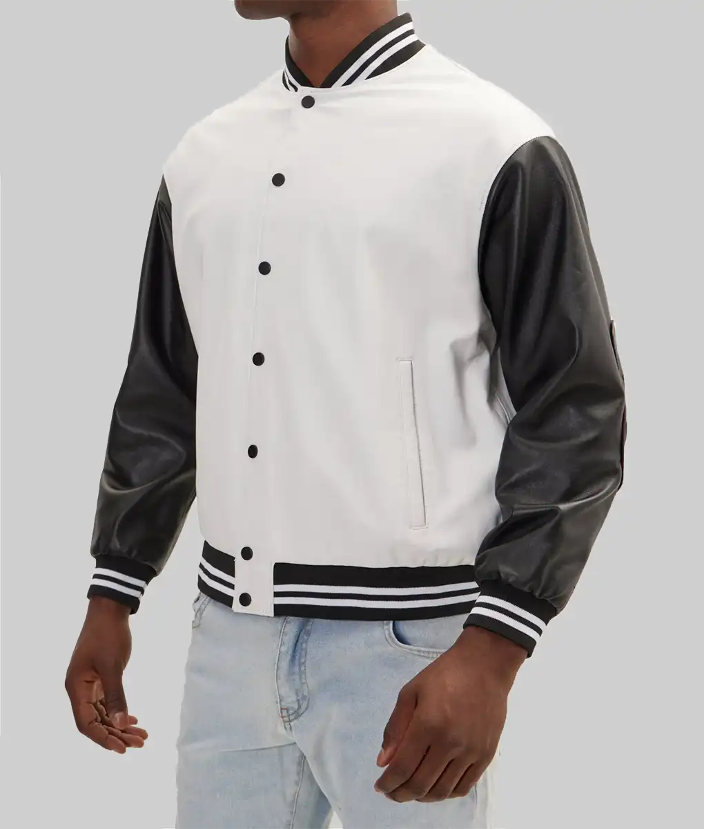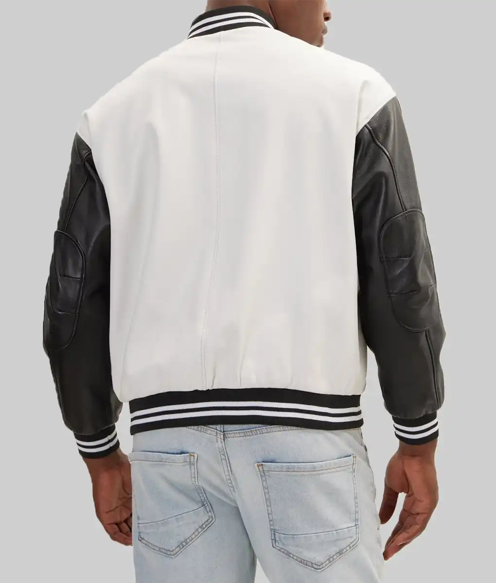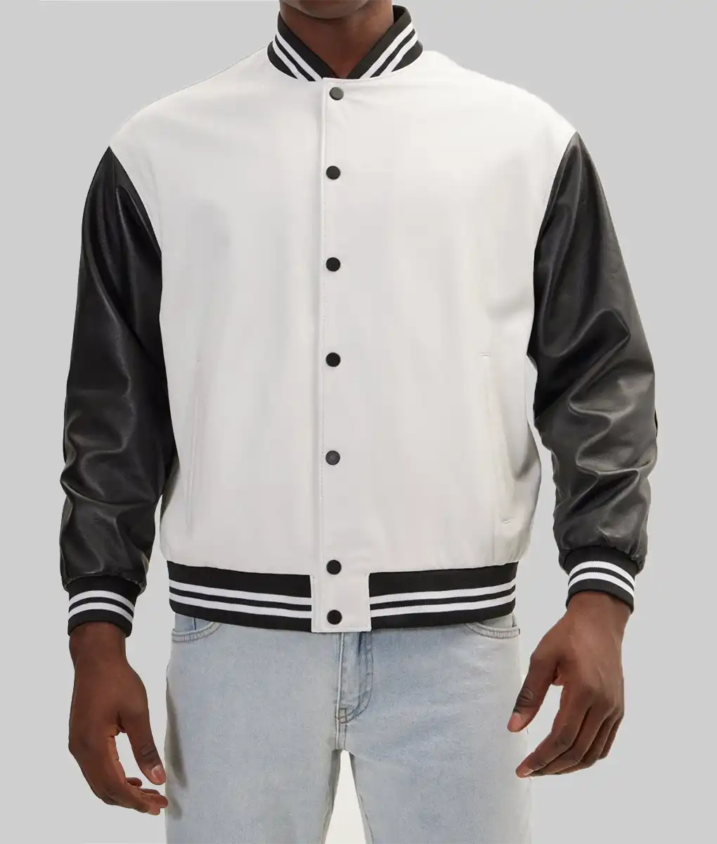 Men’s White and Black Leather Varsity Jacket