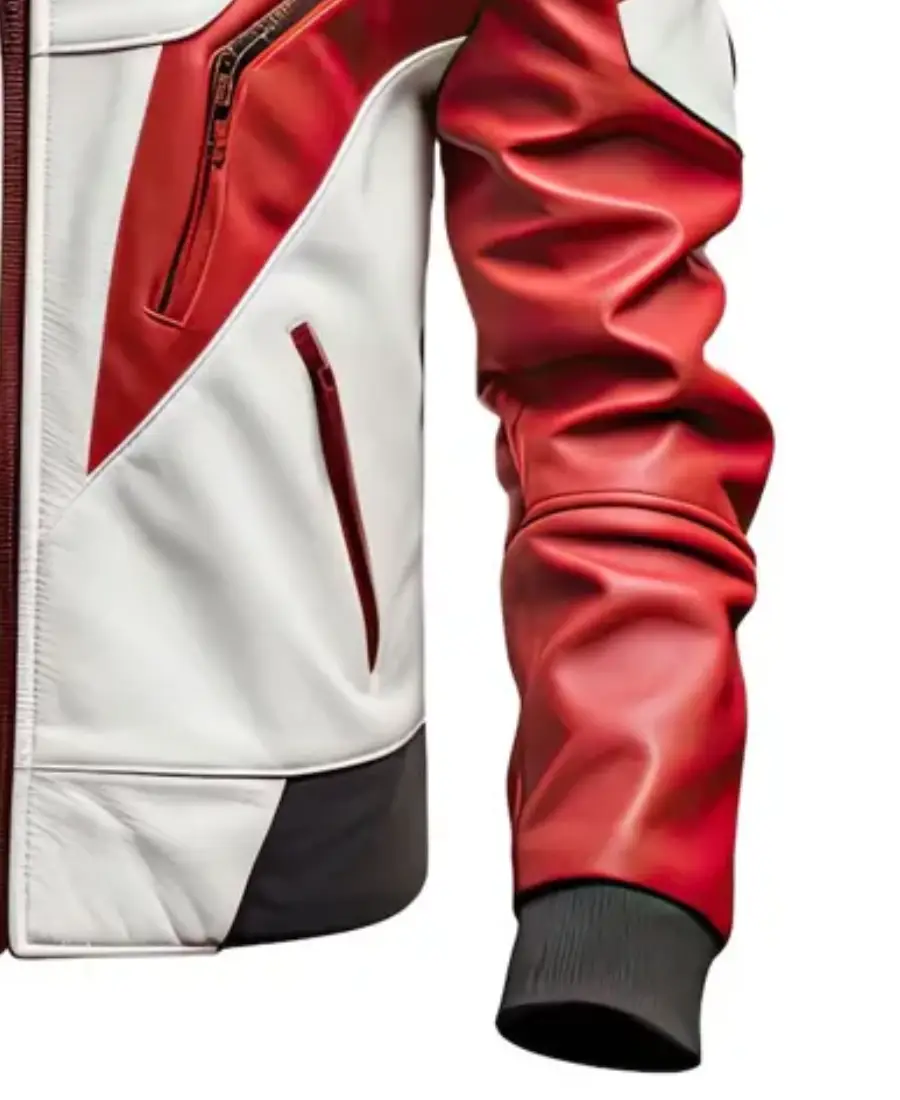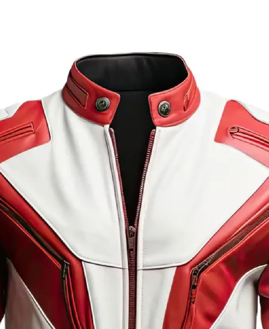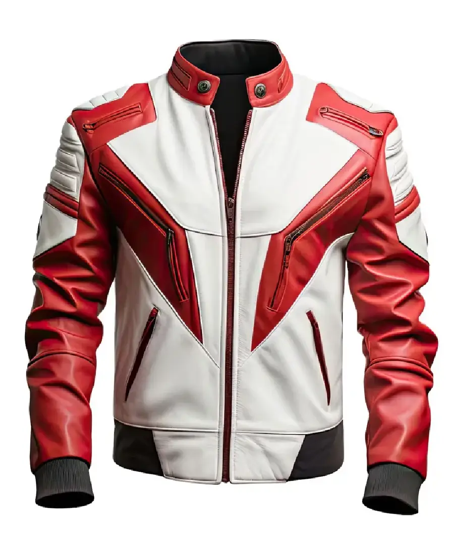 Shop The Men’s White and Red Street Racer Leather Jacket