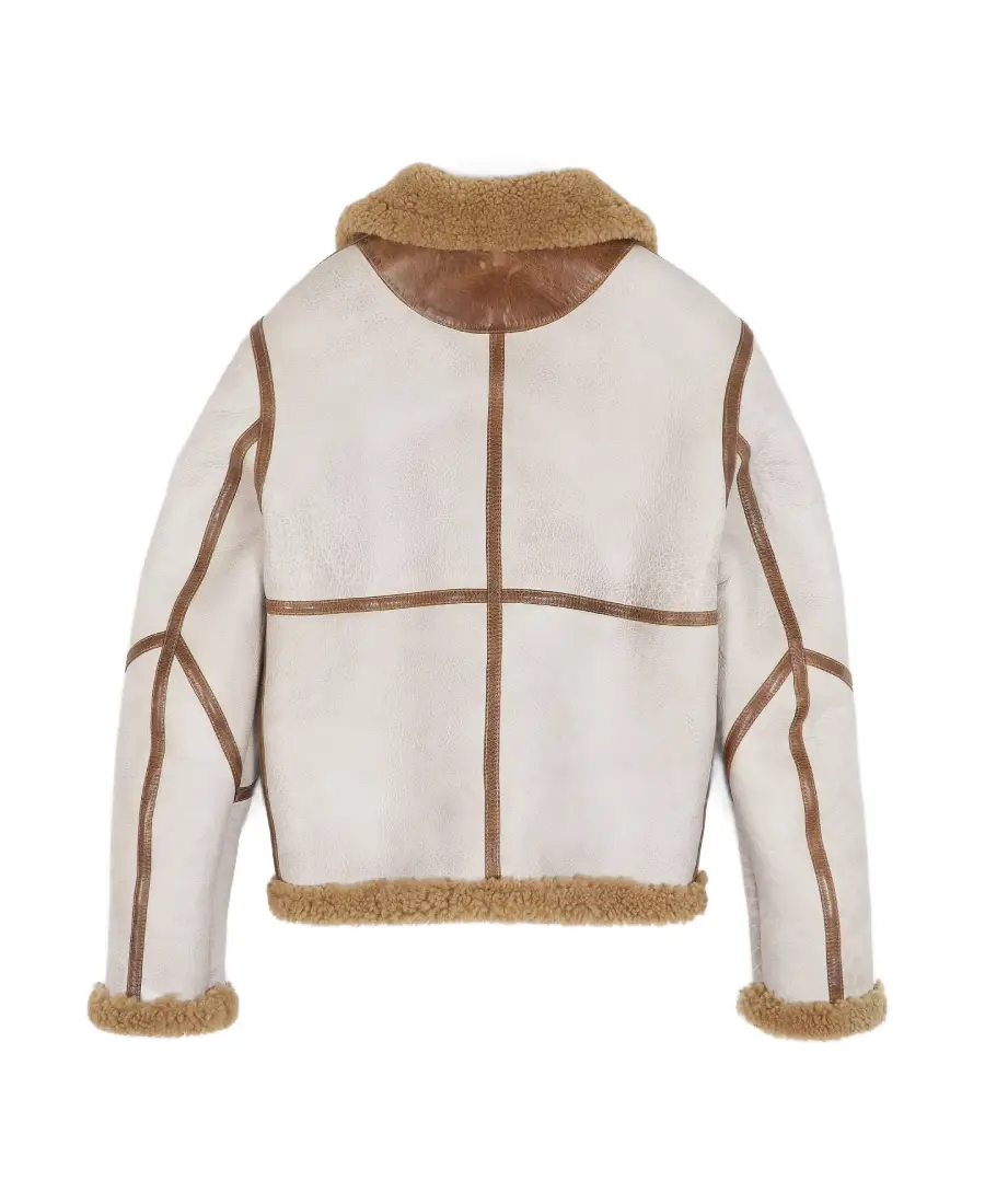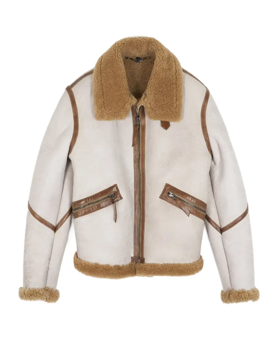 Men’s White Aviator Bomber Jacket is made from premium sheepskin leather in a clean white color that gives it a bold and standout look. The outer leather has a smooth finish that enhances its modern aviator style. The inner is lined with soft sherpa that provides a warm and cozy feel, making it a strong choice for colder days. It features a shirt style sherpa collar that adds a classic aviation inspired touch to the design. The front zipped closure gives it a secure and sleek finish. Full length sleeves come with open hem cuffs that create a relaxed and easy style. It includes two waist pockets along with two inner pockets that offer space for carrying daily items while keeping the overall look clean and well balanced.