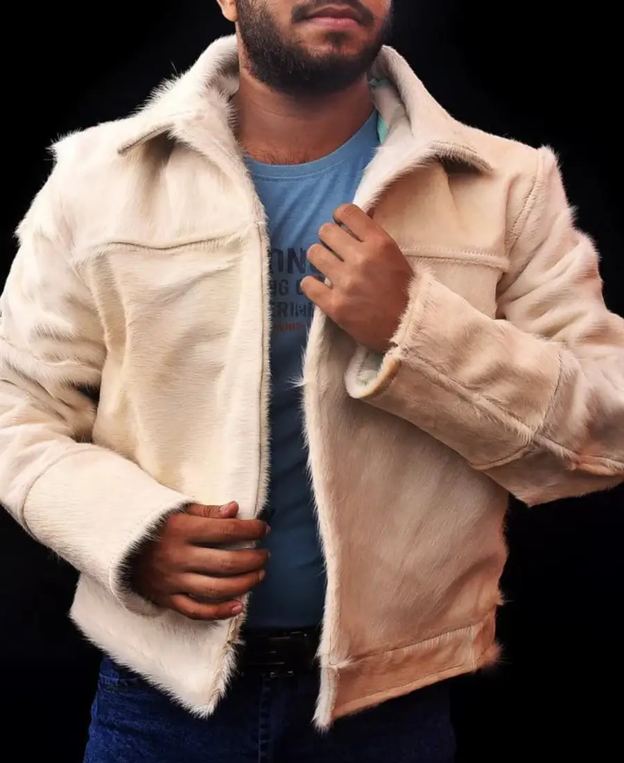 Shop The Men’s White Hair On Cowhide Leather Jacket