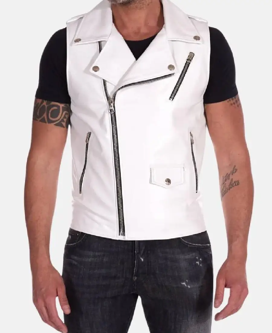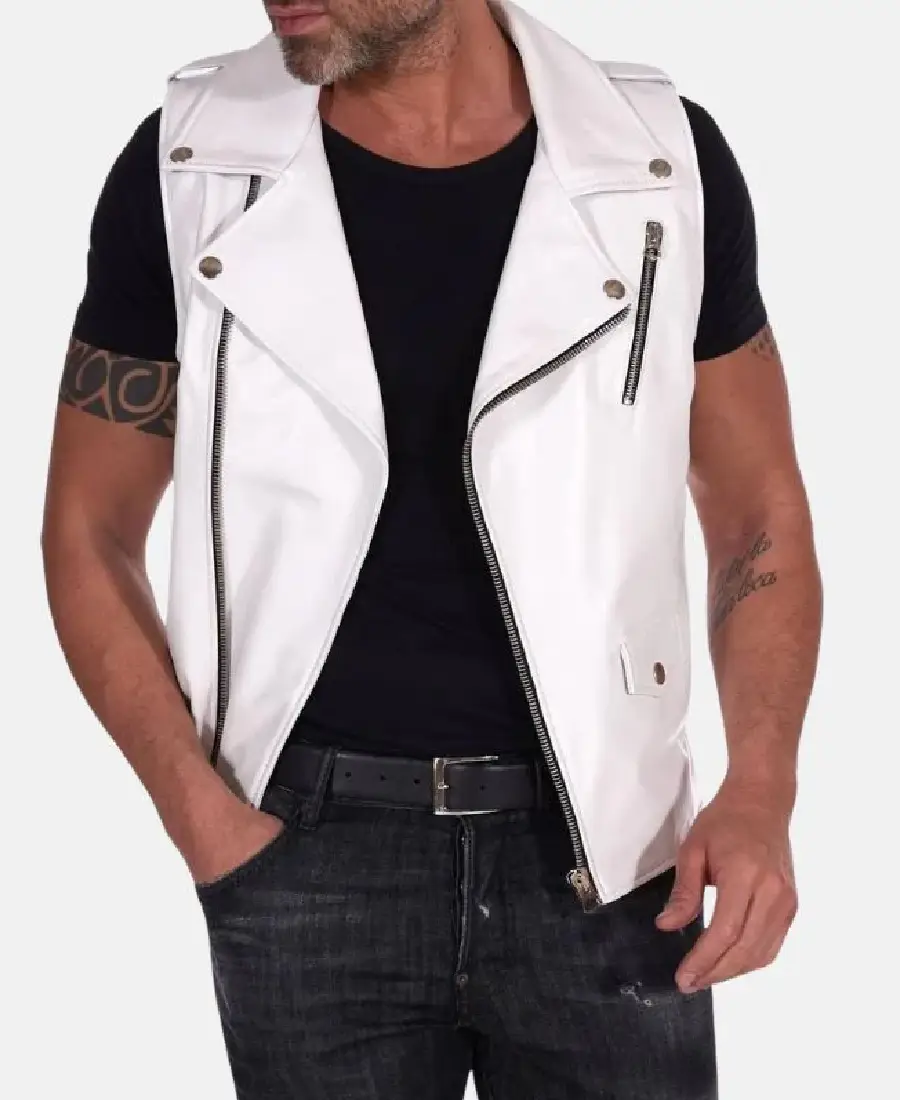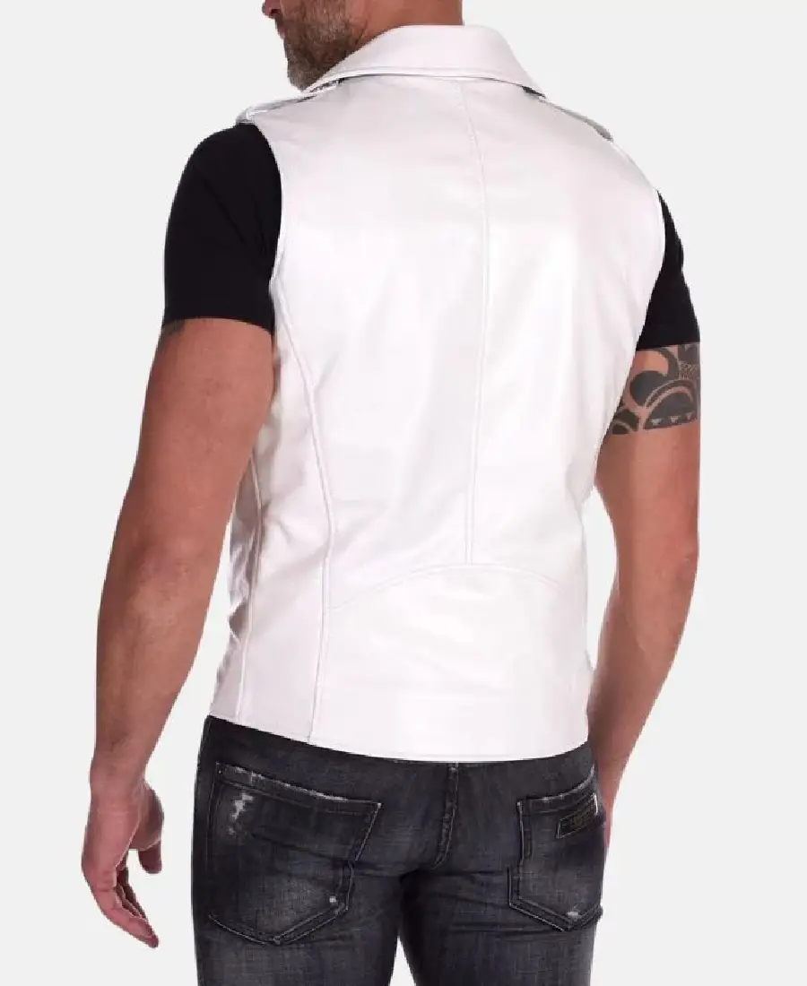Mens White Motorcycle Leather Vest