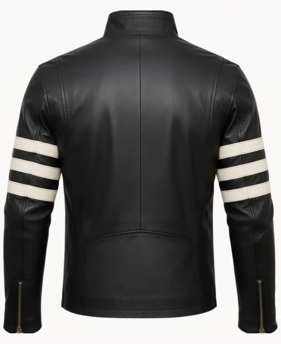 Men’s White Stripe Moto Leather Jacket