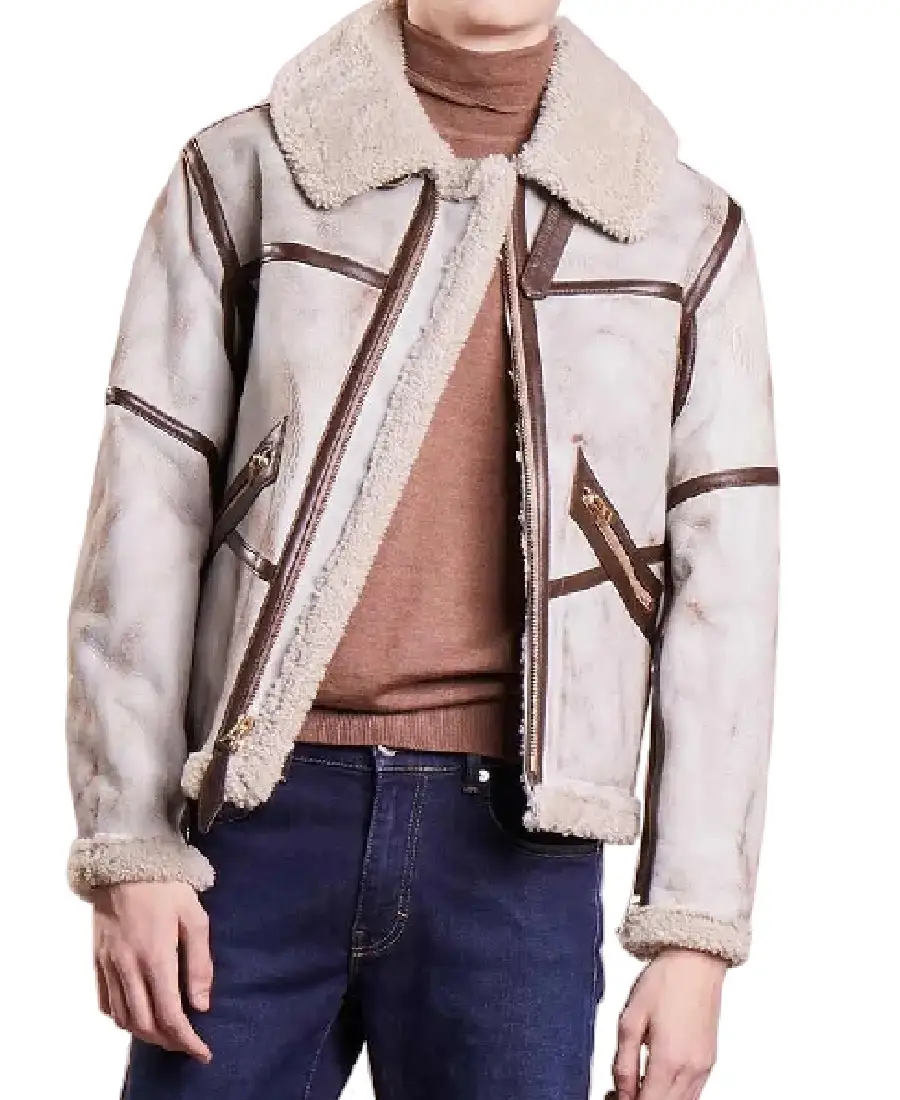 Shop The Men’s White Waxed Leather Aviator Jacket