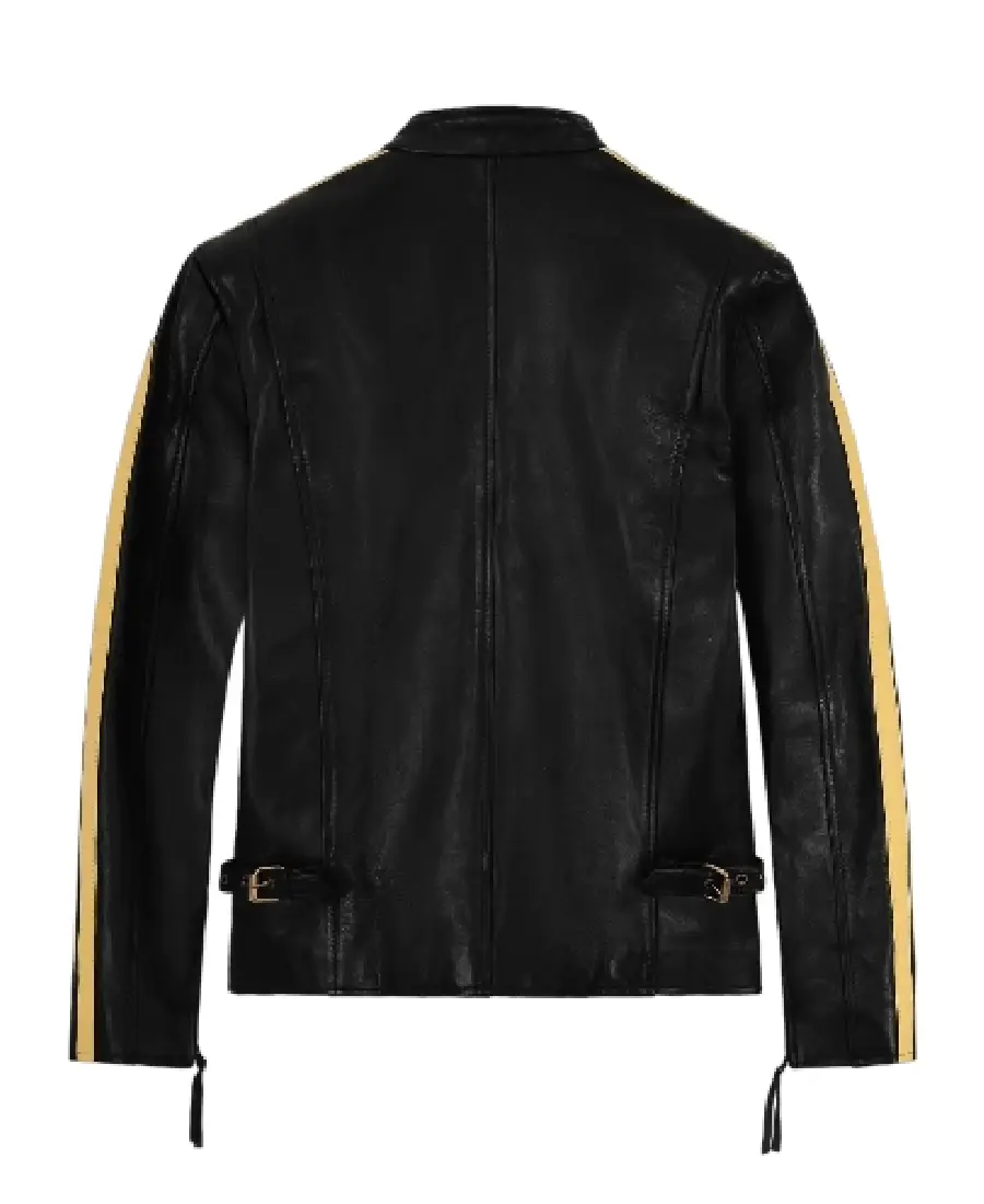 Shop The Men’s Yellow Stripes Black Leather Jacket