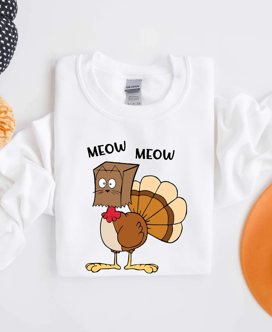 Meow Meow Funny Turkey Thanksgiving Sweatshirt