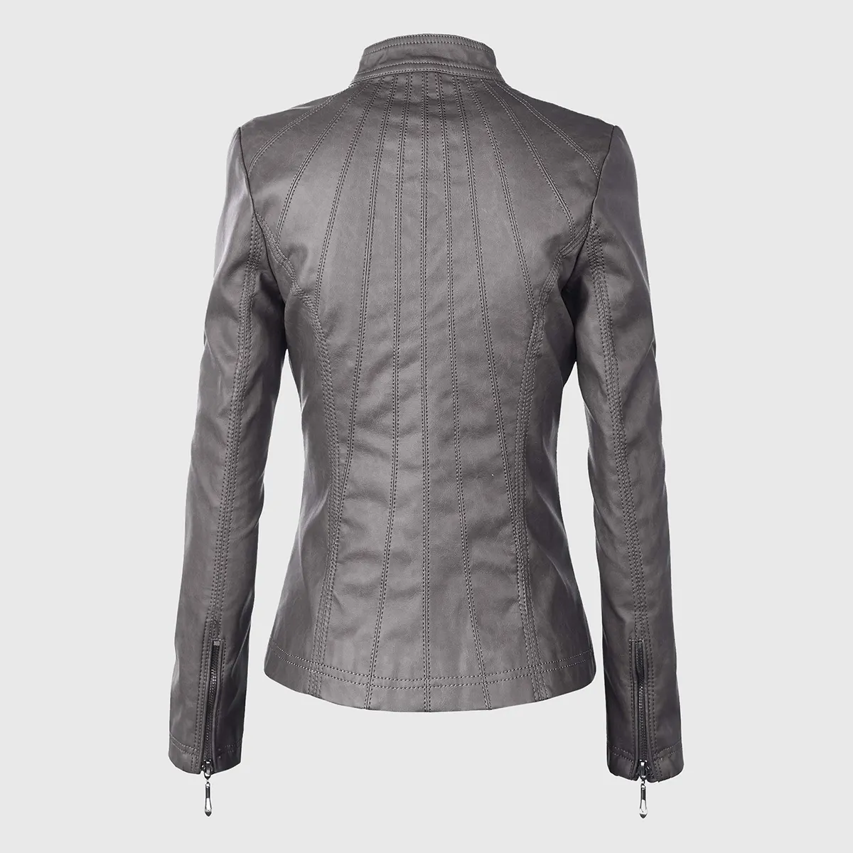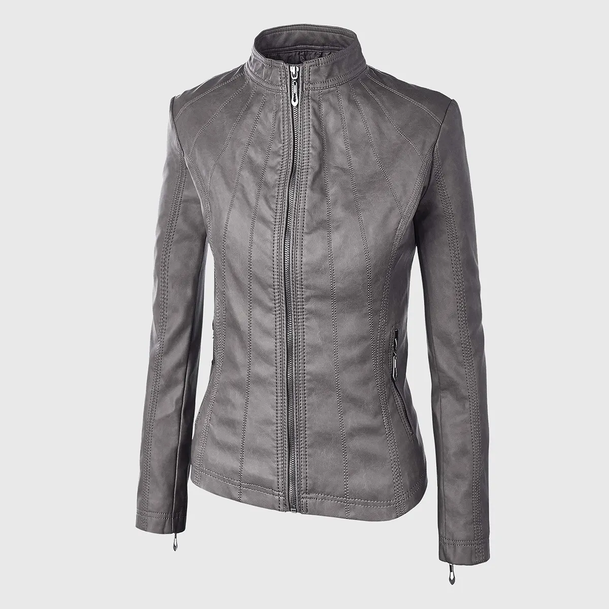 Mia Grey Moto Biker Leather Jacket