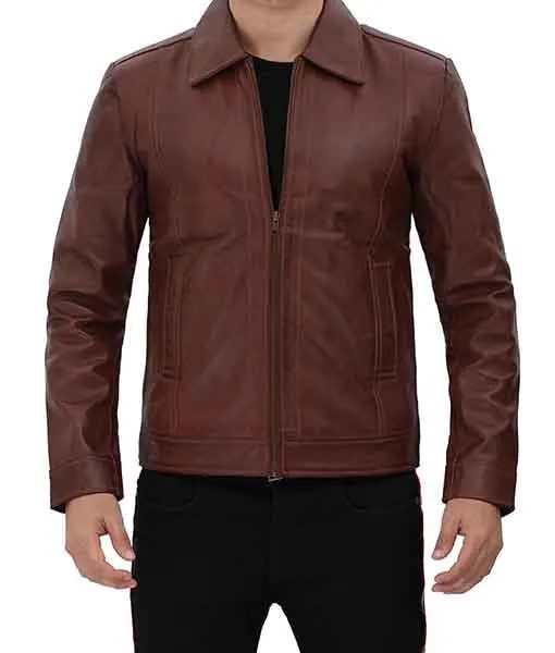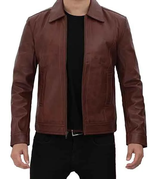 Shop TheMichael Men’s Stylish Brown Pebbled Leather Jacket