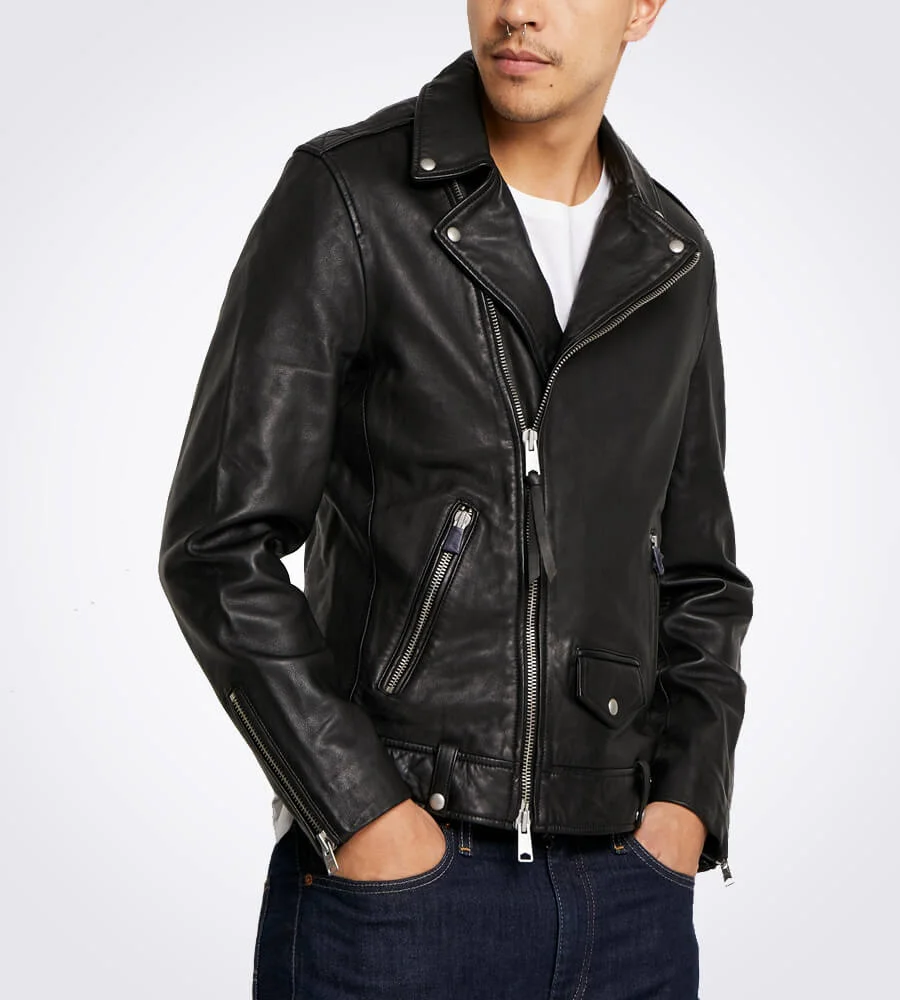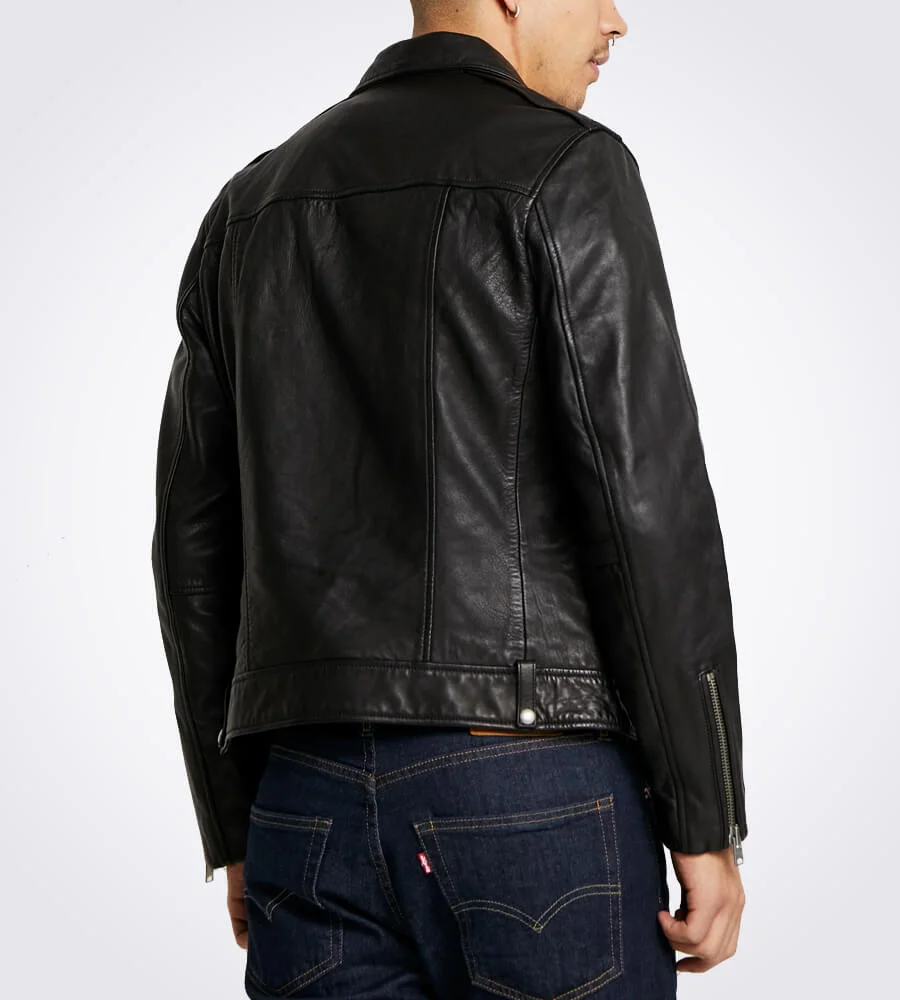 Shop The Milo Men’s Black Asymmetrical Double Breasted Biker Style Leather Jacket