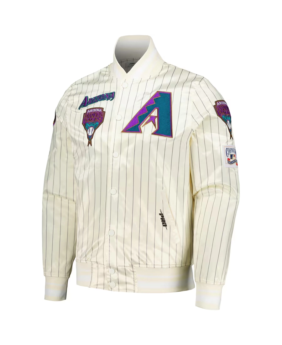Shop MLB Arizona Diamondbacks Cream Pinstripe Retro Classic Satin Jacket For Men And Women On Sale