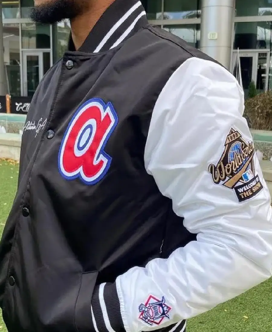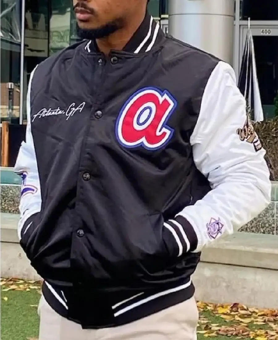 MLB Atlanta Braves Black and White Satin Jacket